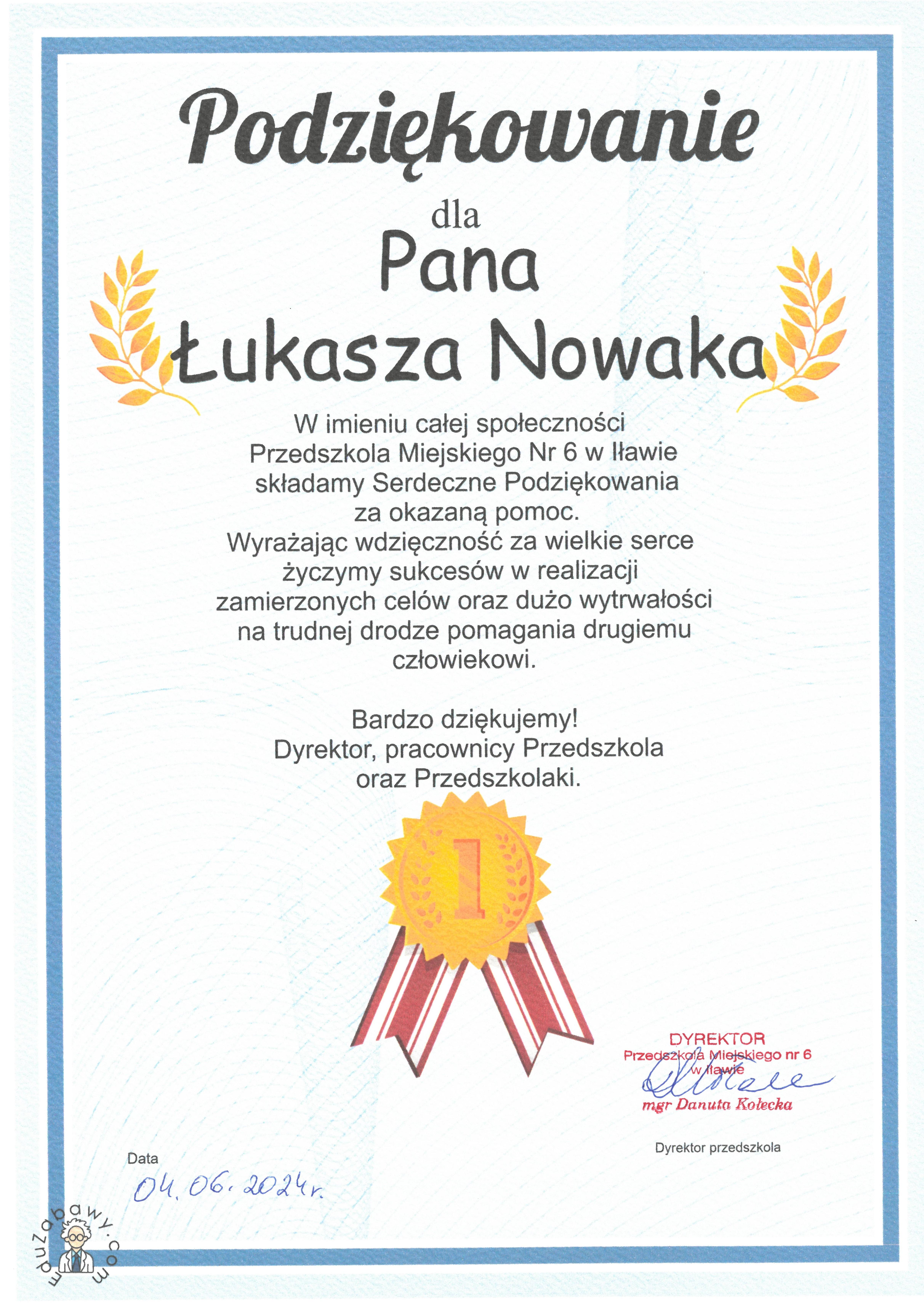 Na ręce naszego funkcjonariusza ogn. Łukasza Nowaka wpłynęły podziękowania od społeczności Przedszkola Miejskiego nr 6 w Iławie za okazaną pomoc.