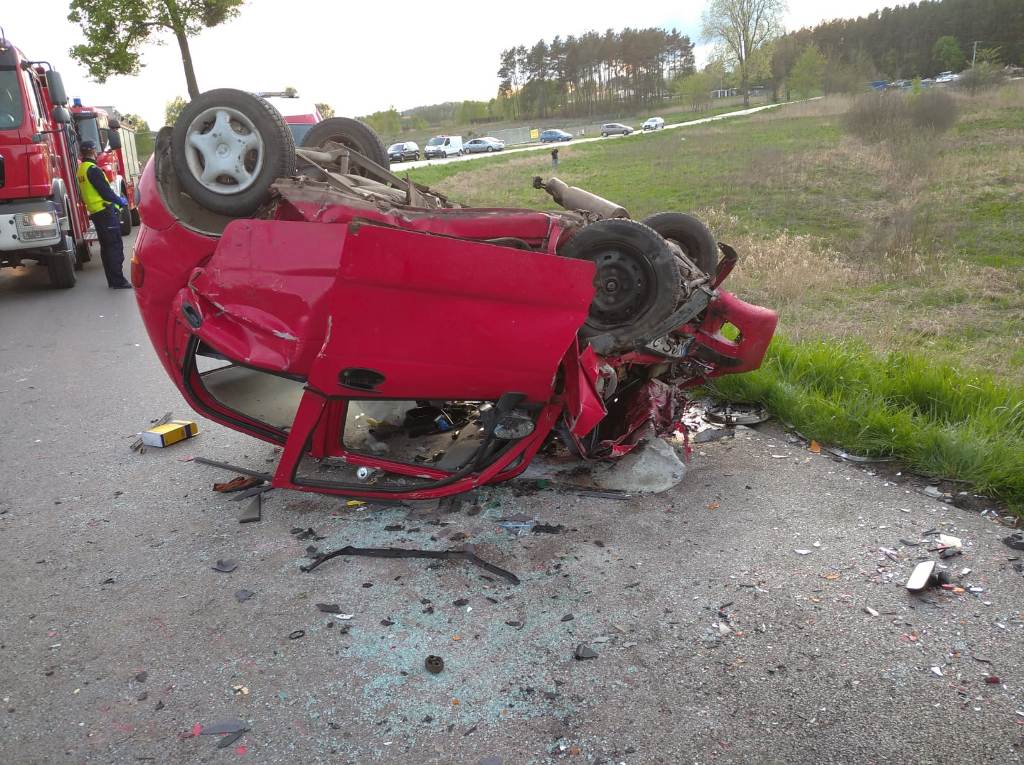 Z informacji, jakie wpłynęły, w zgłoszeniu wynikało, że są osoby poszkodowane. Do akcji ratowniczej z ostródzkiej JRG zadysponowano dwa samochody ratowniczo-gaśnicze. Na miejscu zdarzenia strażacy zastali potężnie rozbite pojazdy. Jeden z nich leżał na dachu, a drugi znajdował się w rowie. Kobieta i mężczyzna podróżujący vw, który znajdował się w rowie, samodzielnie opuścili pojazd. Mieli lekkie obrażenia. W leżącym na dachu daewoo matiz, uwięziony był kierujący nim mężczyzna. Jego stan był bardzo poważny. Strażacy przy pomocy ratowniczych narzędzi hydraulicznych i pneumatycznych wydobyli rannego. Miał liczne złamania, zaczynał tracić przytomność. Strażacy udzielili mu kwalifikowanej pierwszej pomocy i przekazali zespołowi ratownictwa medycznego. Równolegle zabezpieczyli teren akcji oraz samochody pod względem pożarowym. Na miejsce wypadku przyleciał śmigłowiec Lotniczego Pogotowia Ratunkowego. Stan rannego mężczyzny pogarszał się, był dwukrotnie reanimowany. Ostatecznie poszkodowanego przewieziono do szpitala ambulansem. W dalszej fazie akcji strażacy zabezpieczyli operację startu śmigłowca LPR.