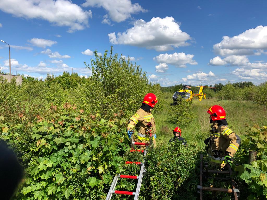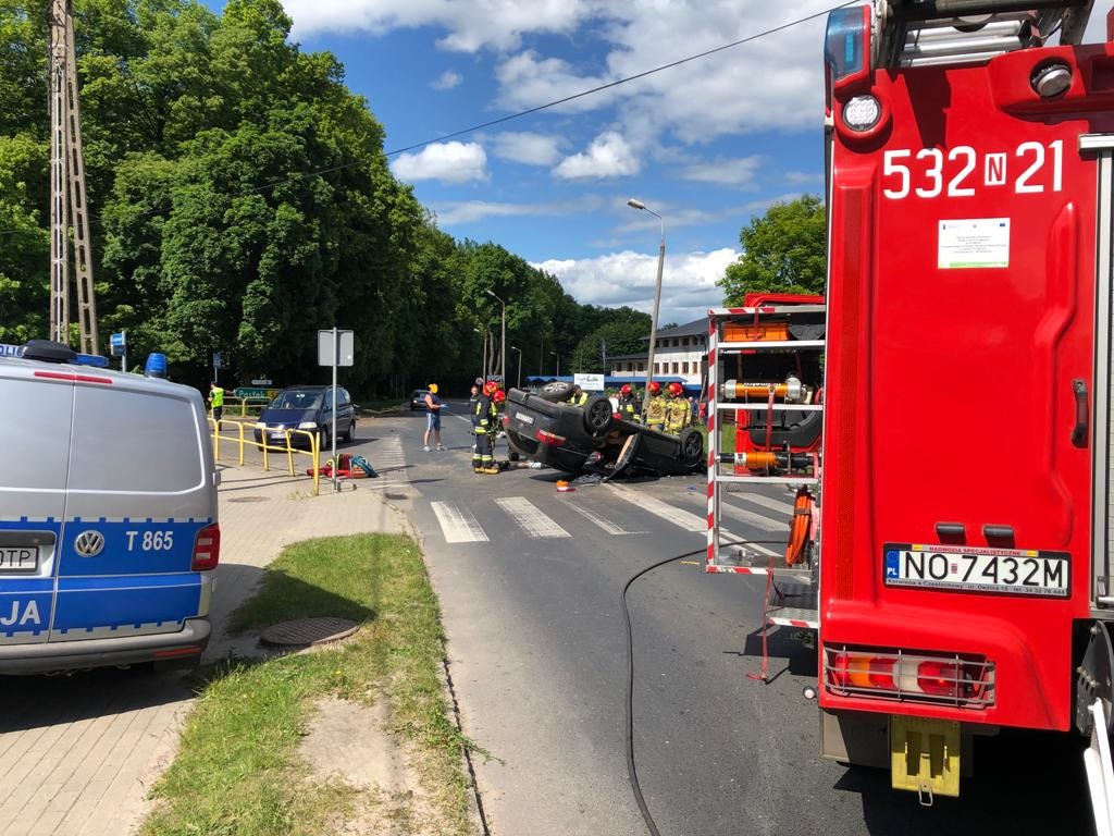 Na ulicy Żeromskiego dachował osobowy opel, którym podróżowały dwie osoby. Wypadek zgłosili do centrum powiadamiania ratunkowego dwaj strażacy z ostródzkiej Komendy Powiatowej Państwowej Straży Pożarnej, którzy w czasie wolnym od służby przejeżdżali tą ulicą. Bez wahania st. ogn. Paweł Jakusik i ogn. Wiktor Marchlewicz pośpieszyli z pomocą uwięzionej w pojeździe kobiecie oraz mężczyźnie, który obok auta tracił już przytomność. Zabezpieczyli miejsce zdarzenia, udzielili poszkodowanym pomocy medycznej i monitorowali ich parametry życiowe do momentu przyjazdu służb ratowniczych. Z morąskiej JRG wyjechały dwa samochody ratowniczo-gaśnicze oraz rozpoznawczo ratowniczy. Ponadto dyspozycję wyjazdu otrzymała wojskowa straż pożarna z Morąga. Strażacy wydobyli z rozbitego auta nieprzytomną, ciężko ranną kobietę. Miała poważne obrażenia głowy. Została zabrana śmigłowcem LPR do szpitala. Poszkodowanego mężczyznę z podejrzeniem urazu kręgosłupa, ambulansem także zabrano do szpitala. Strażacy ponadto zabezpieczyli pojazd pod względem pożarowym oraz operację lądowania i startu śmigłowca Lotniczego Pogotowia Ratunkowego. Droga w rejonie wypadku zablokowana była kilkadziesiąt minut.