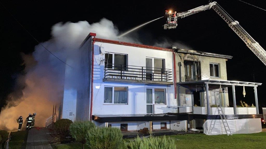 W sobotę 29 stycznia po godzinie dziewiętnastej doszło do pożaru dachu budynku wielorodzinnego w Jarnołtowie – gm. Małdyty. Pierwsze zgłoszenie, które wpłynęło do stanowiska kierowania komendanta powiatowego PSP w Ostródzie, informowało o pożarze sadzy w przewodzie kominowym. Do akcji ratowniczo gaśniczej zaalarmowano strażaków ochotników z Jarnołtowa oraz dwa samochody ratowniczo-gaśnicze i podnośnik hydrauliczny z JRG Morąg. Gdy strażacy z Jarnołtowa dojeżdżali do miejsca zdarzenia, przekazali informację do dyżurnego operacyjnego powiatu, że widoczny jest ogień na dachu budynku. Alarm pożarowy ogłoszony został w pozostałych jednostkach OSP z gminy Małdyty oraz dla OSP Miłomłyn. W budynku tak zwanym domu mieszkalny typu „bliźniak” w momencie powstania pożaru przebywały dwie osoby, które samodzielnie go opuściły. Mieszkańcy nie odnieśli żadnych obrażeń. Strażacy podali z gaśniczych linii wężowych wodę na palący się dach. Wykorzystali do tego drabiny przystawne oraz podnośnik hydrauliczny. Akcja gaśnicza była trudna, było bardzo duże zadymienie. Strażacy musieli pracować w aparatach ochrony dróg oddechowych. Na miejsce akcji z Komendy Miejskiej PSP z Elbląga przybył samochód specjalny, który na miejscu zapewniał butle ze sprężonym powietrzem do aparatów oddechowych. Działania gaśnicze wraz z dogaszaniem i rozbiórką spalonych elementów trwały ponad 6 godzin. Brało w nich udział 12 zastępów pożarniczych.