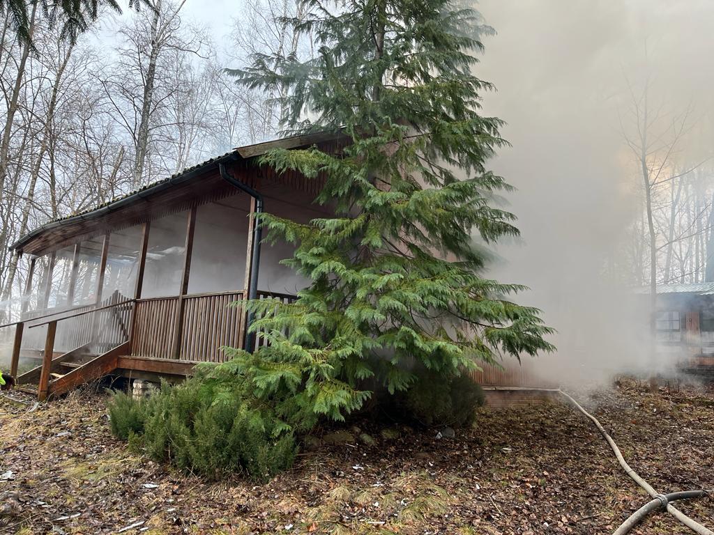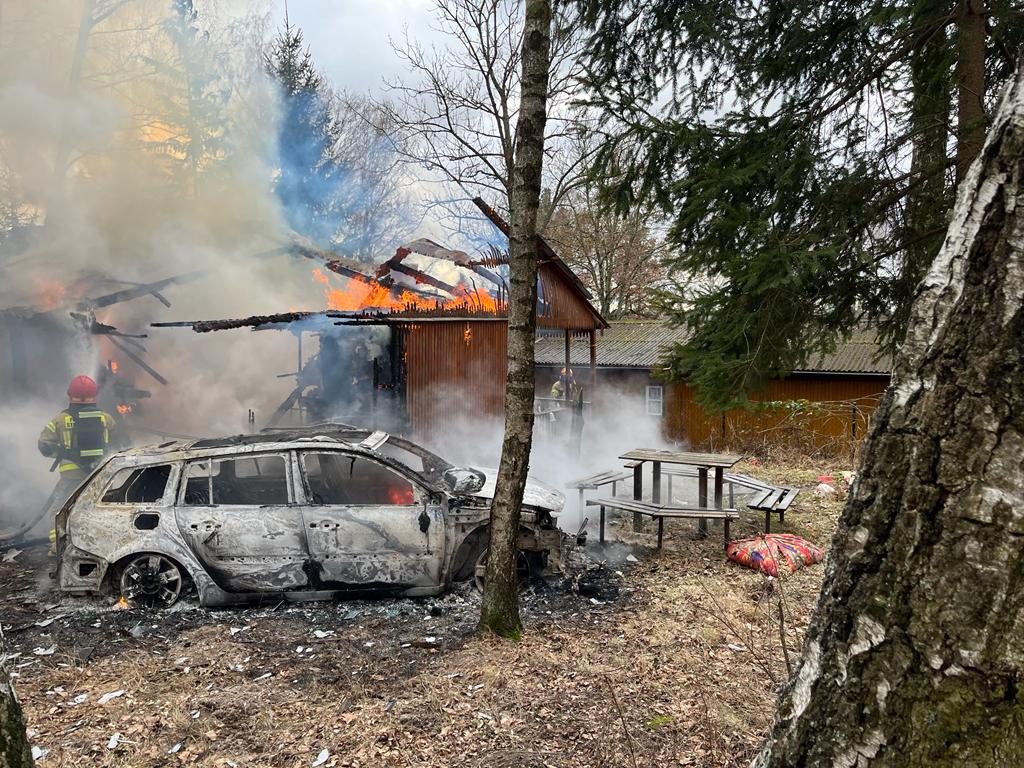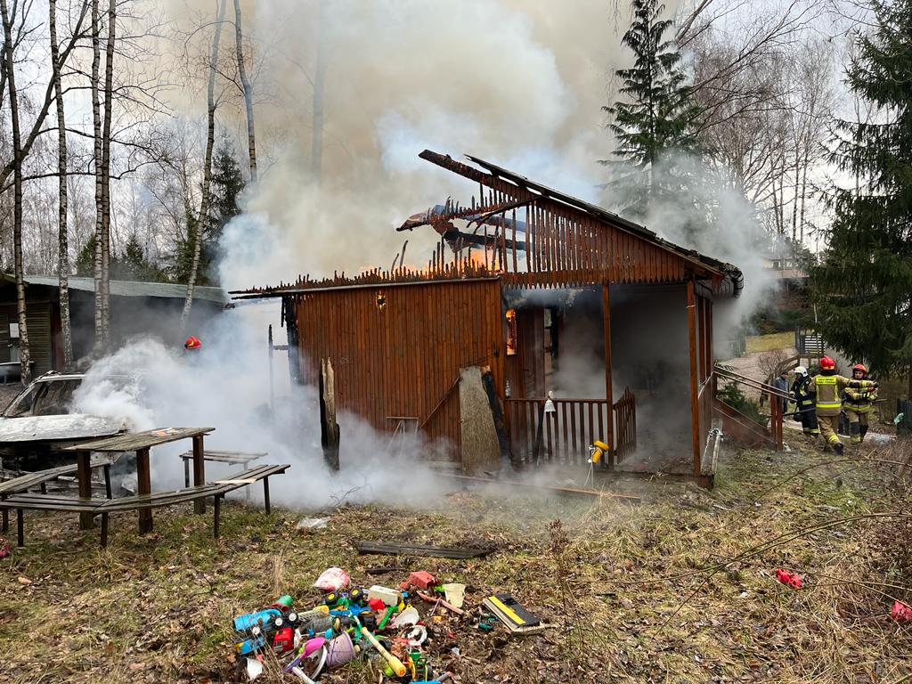 W poniedziałek 7 lutego kilkanaście minut po godzinie dwunastej do stanowiska kierowania komendanta powiatowego PSP w Ostródzkie wpłynęło zgłoszenie z informacją o pożarze domku letniskowego w Kretowinach – gm. Morąg. Do akcji gaśniczej zadysponowano dwa samochody ratowniczo-gaśnicze, podnośnik hydrauliczny i samochód rozpoznawczo ratowniczy z JRG Morąg. Alarm pożarowy ogłoszono również w Ochotniczej Straży Pożarnej w Żabim Rogu. Na miejsce pożaru udał się także ostródzki zastępca komendanta powiatowego PSP. Na miejscu akcji strażacy zastali rozwinięty pożar drewnianego domku letniskowego, a także zaparkowanego w pobliżu samochodu osobowego. Strażacy równolegle podali wodę z gaśniczych linii wężowych na płonący domek i samochód. W pierwszej fazie akcji gaśniczej nie stwierdzono osób poszkodowanych. Pożar został ugaszony dość szybko, po czym strażacy przystąpili do przeszukania pogorzeliska i dogaszania zarzewi ognia. Ponowne przeszukanie terenu objętego pożarem na szczęście potwierdziło brak osób poszkodowanych. Przyczyny pożaru wyjaśnia policja.
