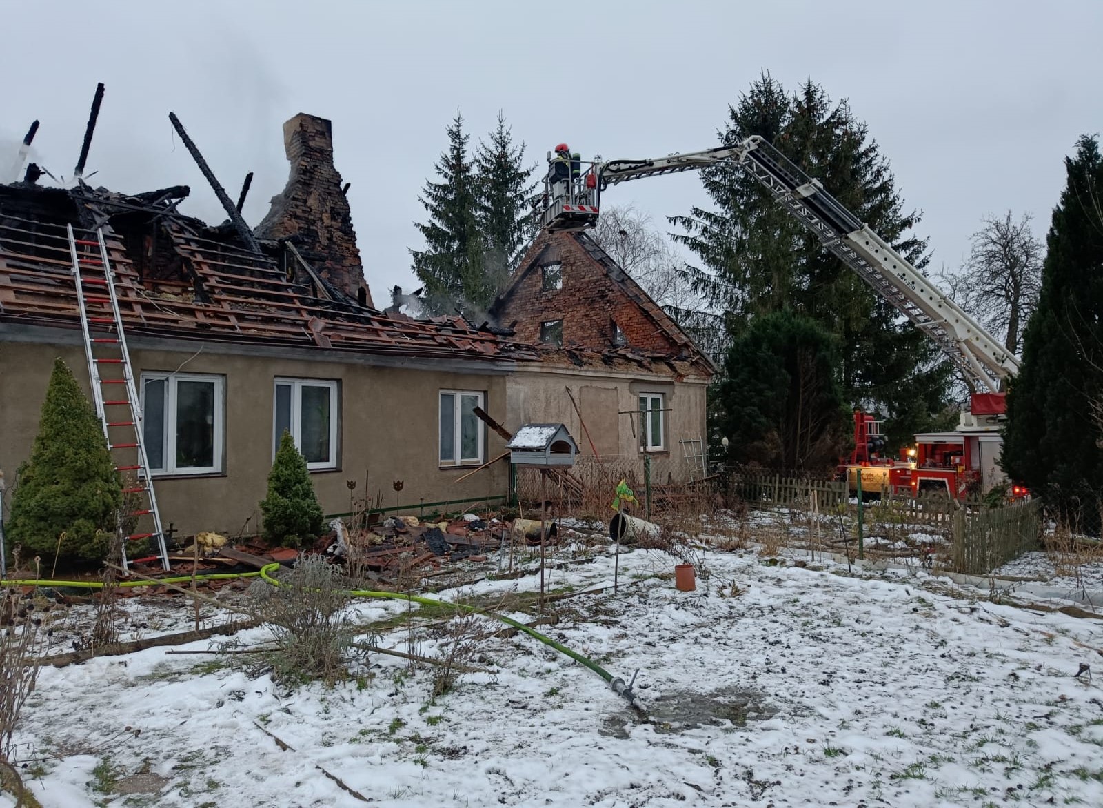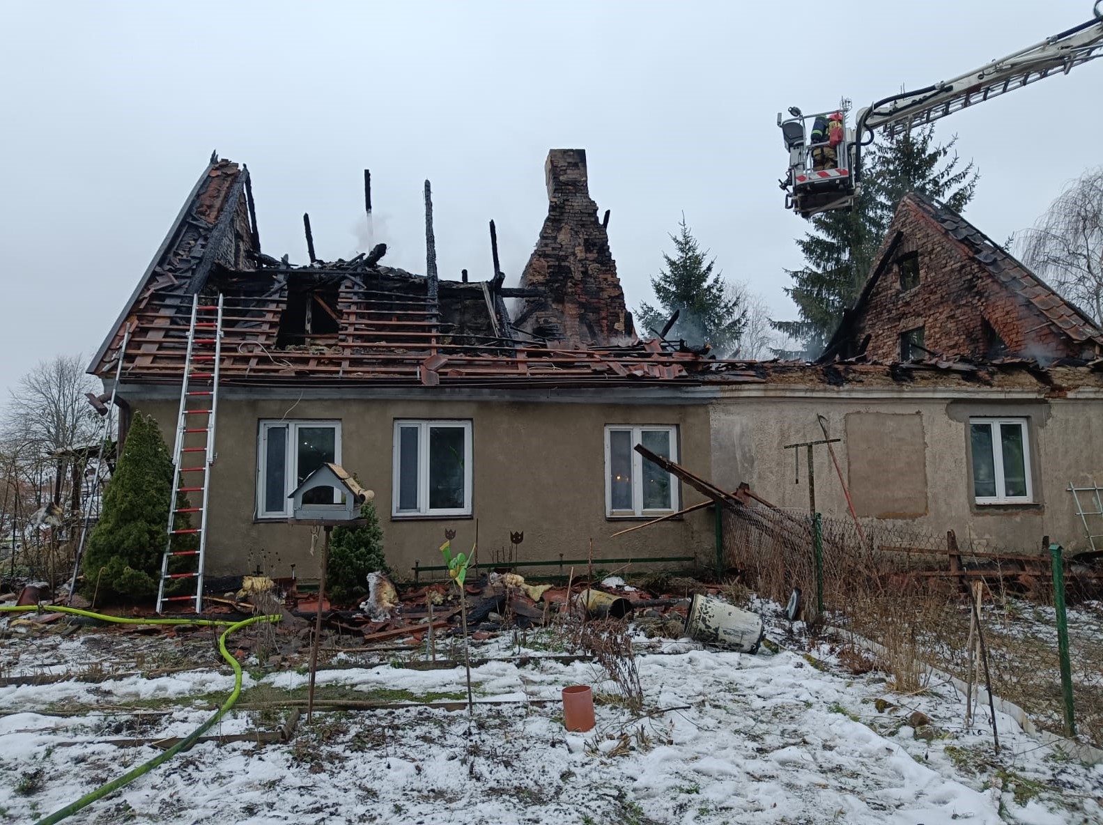 W godzinach porannych 8 lutego miał miejsce kolejny pożar domu w powiecie ostródzkim. Około godziny 4:30 do Stanowiska Kierowania Komendanta Powiatowego PSP w Ostródzie wpłynęło zgłoszenie o pożarze budynku mieszkalnego w miejscowości Mysłaki w gminie Miłakowo. Osoba zgłaszająca przekazała, że poddasze domu zamieszkiwanego przez dwie rodziny objęte jest pożarem. Na miejsce zadysponowano trzy zastępy z jednostki ratowniczo-gaśniczej w Morągu oraz zastępy z Ochotniczych Straży Pożarnych w Miłakowie i Boguchwałach. Po przybyciu na miejsce strażacy ustalili, że szczęśliwie wszyscy mieszkańcy domu zdołali ewakuować się na zewnątrz. Dowódca akcji podjął decyzję o poprowadzeniu linii gaśniczych zarówno na zewnątrz jak i wewnątrz domu. Akcję gaśniczą prowadzono z użyciem drabin przystawnych oraz podnośnika mechanicznego. Po ugaszeniu pożaru niezbędna była rozbiórka spalonych elementów konstrukcji dachu. Interwencja strażaków trwała niespełna 4 godziny.