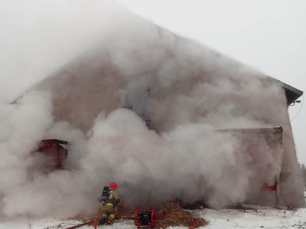 W środę 20 stycznia kilka minut po godzinie 12 zgłoszony został pożar kurnika wielkopowierzchniowego w Gierzwałdzie – gm. Grunwald. Zgłaszający poinformował, że w kurniku znajdowało się 2200 młodych indyków. Do akcji ratowniczej zadysponowano w sumie sześć pojazdów ratowniczo-gaśniczych i specjalnych z ostródzkiej JRG. Ponadto dyspozycję wyjazdu otrzymały ochotnicze straże pożarne z gminy Grunwald, Dąbrówno, Ostróda i Olsztynek. W akcji gaśniczej wziął udział również specjalistyczny samochód ze sprzętem ochrony dróg oddechowych z JRG Biskupiec. Działania gaśnicze były niezwykle trudne. Panowało bardzo duże zadymienie zarówno wewnątrz, jak i na zewnątrz kurnika. Strażacy zabezpieczeni aparatami powietrznymi, izolującymi drogi oddechowe wprowadzali sukcesywnie wężowe linie gaśnicze do budynku. Paliła się ściółka oraz baloty słomy rozlokowane w kurniku. Niestety w wyniku zadymienia indyki padły. Akcja gaśnicza skupiona była nad powstrzymaniem rozwoju pożaru na dach. Prowadzona była dwutorowo. Zarówno w hali kurnika, a także na strychu, który izolowany był słomą i watą szklaną. Po ponad pięciu godzinach pożar ugaszono. Uratowana została cała więźba dachowa. W akcji gaśniczej udział wzięły 22 zastępy pożarnicze – 78 strażaków. Wstępne straty właściciel oszacował na około 200 tys. zł, a uratowana mienie na blisko 1 mln zł.