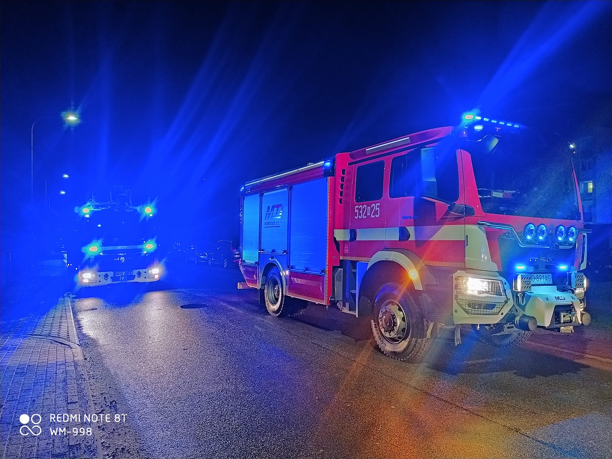 W sylwestrową noc po godzinie pierwszej do Stanowiska Kierowania Komendanta Powiatowego Państwowej Straży Pożarnej w Ostródzie wpłynęło zgłoszenie o pożarze mieszkania w Morągu. Ze zgłoszenia wynikało, że w mieszkaniu może wciąż znajdować się co najmniej jedna osoba. Na miejsce zdarzenia niezwłocznie udały się trzy zastępy z Jednostki Ratowniczo‑Gaśniczej w Morągu. Dyspozycję wyjazdu otrzymał również zastęp Wojskowej Straży Pożarnej stacjonujący w morąskiej jednostce wojskowej. Po dojeździe na miejsce zdarzenia strażacy zastali rozwinięty pożar w jednym z mieszkań na drugiej kondygnacji. Na balkonie na udzielenie pomocy oczekiwał mężczyzna, któremu pożar odciął drogę ucieczki. Strażacy niezwłocznie przystąpili do jego ewakuacji, sprowadzając mężczyznę po drabinie przystawionej do balkonu, a następnie przekazali go pod opiekę Zespołu Ratownictwa Medycznego. Równolegle po klatce schodowej rozwinięto linię gaśniczą. Na skutek spalenia elementów wyposażenia w mieszkaniu panowało silne zadymienie. Strażacy pracowali w aparatach ochrony układu oddechowego oraz korzystali z kamery termowizyjnej.