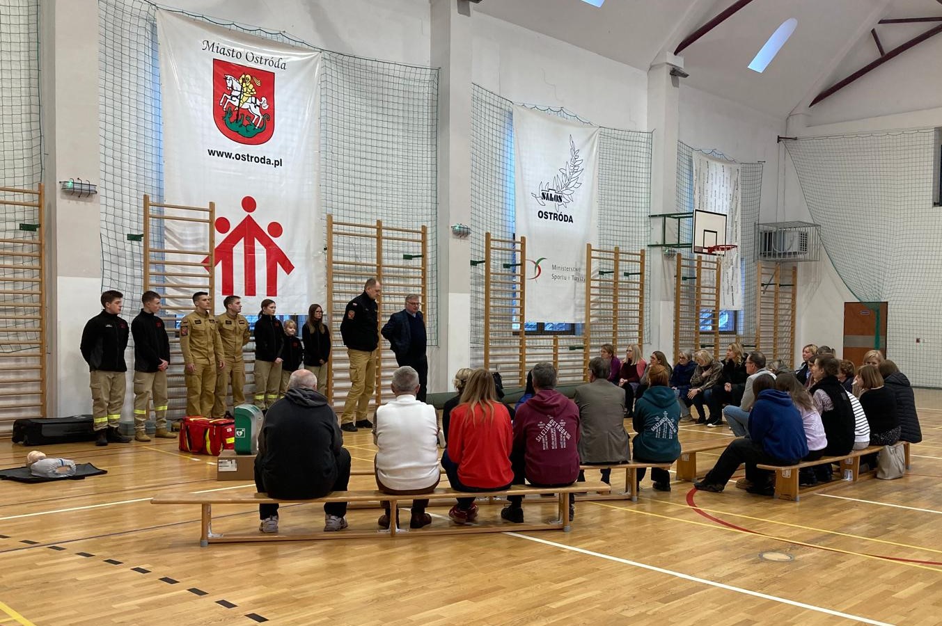 W czwartek 12 lutego Komendant Powiatowy PSP w Ostródzie mł. bryg. Rafał Napiórkowski wraz z funkcjonariuszami naszej Komendy oraz członkami Młodzieżowej Drużyny Pożarniczej w Napromie przeprowadzili szkolenie z pierwszej pomocy kadrze dydaktycznej Zespołu Szkół Salezjańskich im. Dominika Savio w Ostródzie. Szkolenie obejmowało podstawowe czynności ratownicze związane z pomocą osobom z zatrzymaniem akcji serca. Po zakończonym szkoleniu Komendant Powiatowy PSP w Ostródzie przekazał na ręce Dyrektora placówki ks. Sławomira Lubińskiego Automatyczny Defibrylator Zewnętrzny (AED), który zostanie zamontowany w budynku szkoły i ma służyć w razie potrzeby lokalnej społeczności.Zakup defibrylatora został sfinansowany m.in. ze środków pochodzących ze zbiórek organizowanych przez Młodzieżową Drużynę Pożarniczą w Napromie.