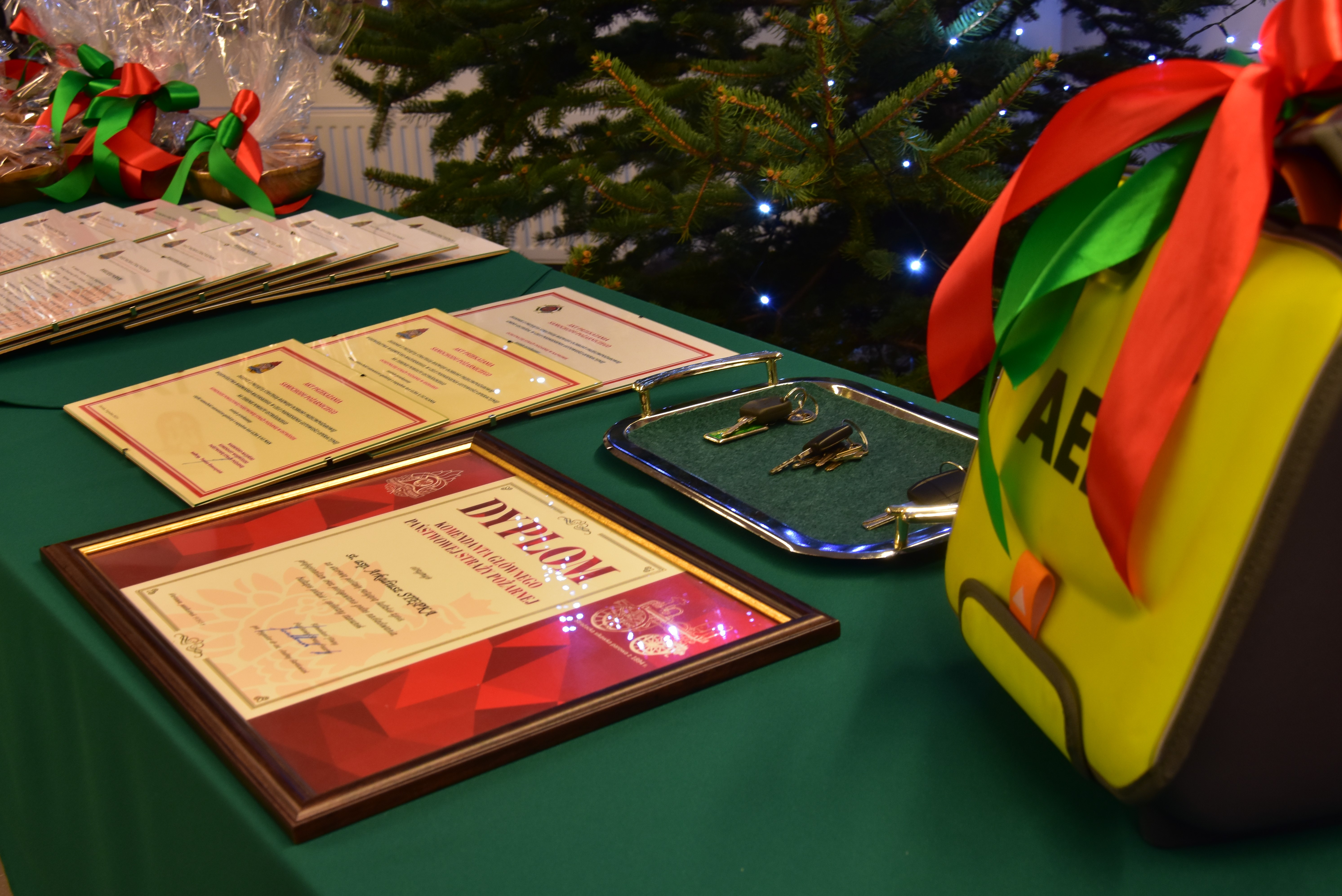 Uroczysta zbiórka była również okazją do wręczenia wyróżnienia. St. asp. Arkadiusz Stępka otrzymał Dyplom Komendanta Głównego PSP, za wzorową postawę ratującą ludzkie życie w czasie wolnym od służby.