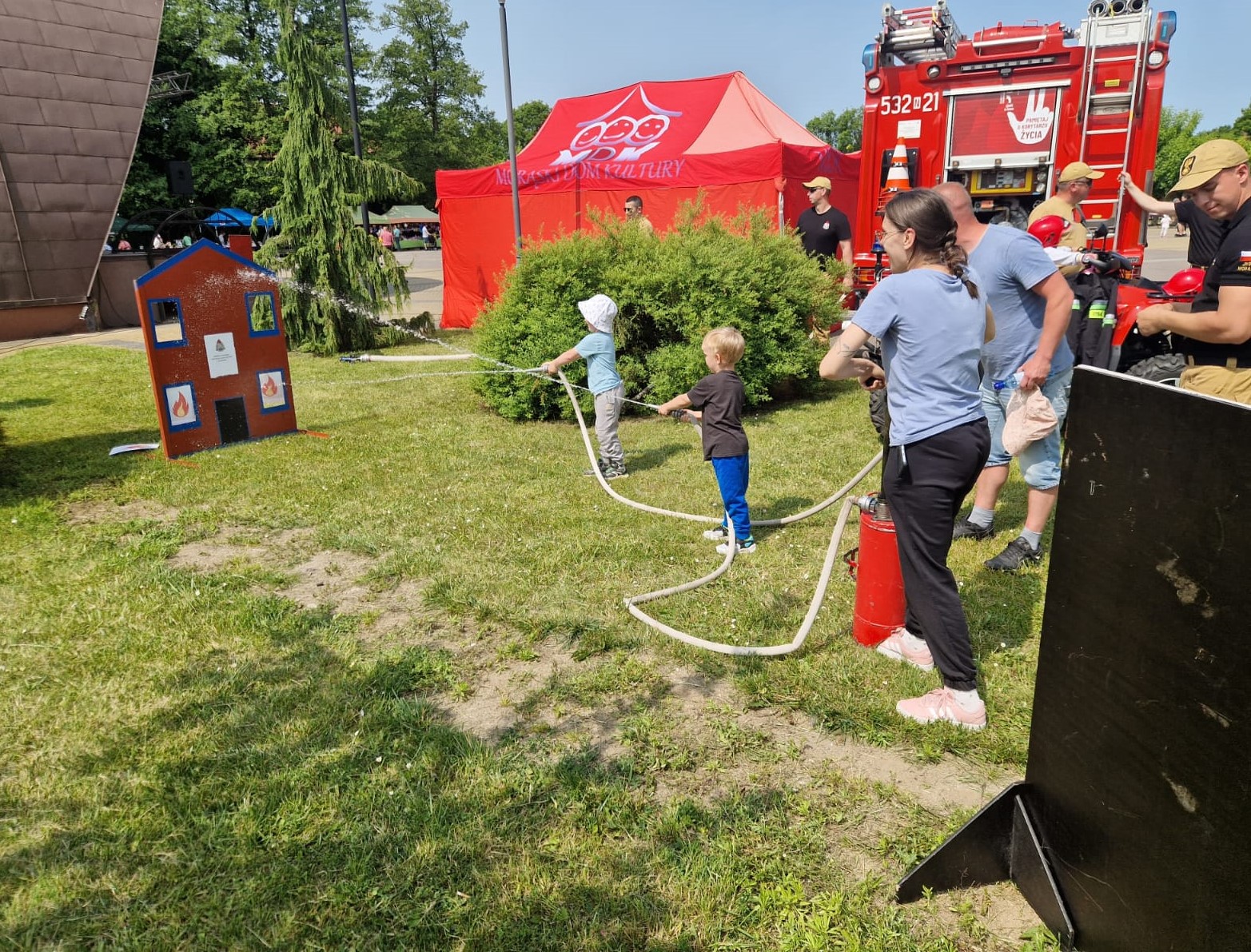 W niedzielę 1 czerwca nasi funkcjonariusze wzięli udział równolegle w dwóch wydarzeniach, podczas których mieli możliwość promowania idei bezpiecznego wypoczynku wśród dzieci i młodzieży. Strażacy byli obecni na festynach z okazji Dnia Dziecka zorganizowanych na terenie Strzelnicy "Garda" w Kaczorach k. Ostródy, a także w parku miejskim w Morągu.