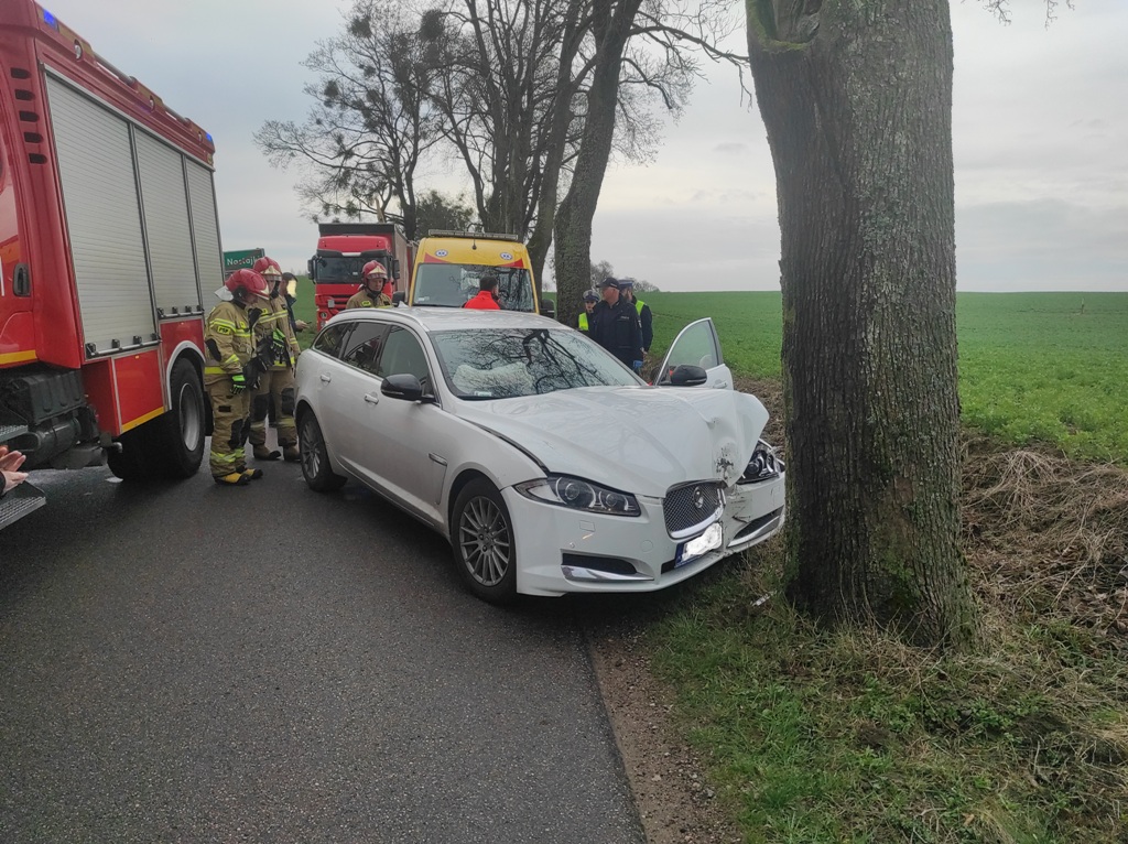 Kilkanaście minut przed godziną ósmą 21 kwietnia doszło do wypadku drogowego w miejscowości Nastajki – gmina Ostróda. Kierujący osobowym jaguarem mężczyzna stracił panowanie nad pojazdem i uderzył w drzewo. Do akcji ratowniczej zadysponowano samochód ratowniczo-gaśniczy i rozpoznawczo ratowniczy z JRG Ostróda oraz samochód ratowniczo-gaśniczy z Ochotniczej Straży Pożarnej w Brzydowie. Gdy strażacy dojechali na miejsce wypadku, mężczyzna był poza pojazdem pod opieką patrolu Policji. Poszkodowany był przytomny, jednak uskarżał się na silne dolegliwości bólowe. Poinformował, że podróżował samodzielnie. Zespół Państwowego Ratownictwa Medycznego udzielił mężczyźnie pomocy medycznej. Poszkodowany został zabrany do szpitala. Strażacy zabezpieczyli miejsce zdarzenia oraz samochód pod względem pożarowym. Droga była zablokowana przez 40 minut.