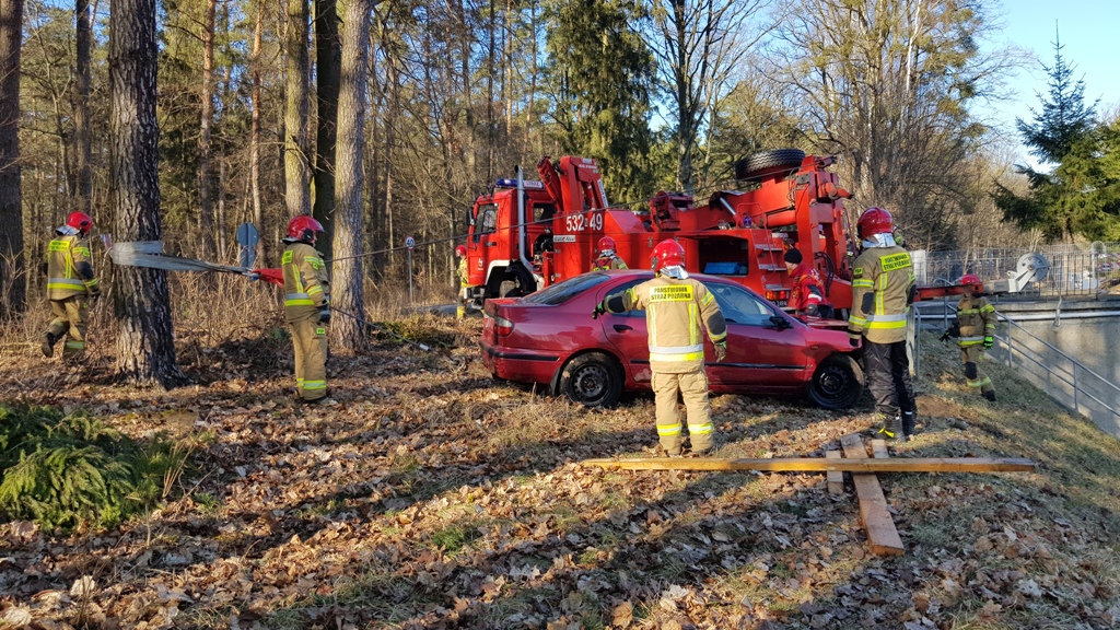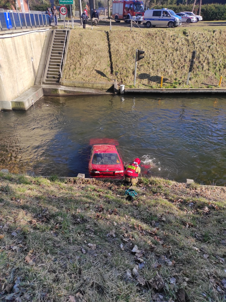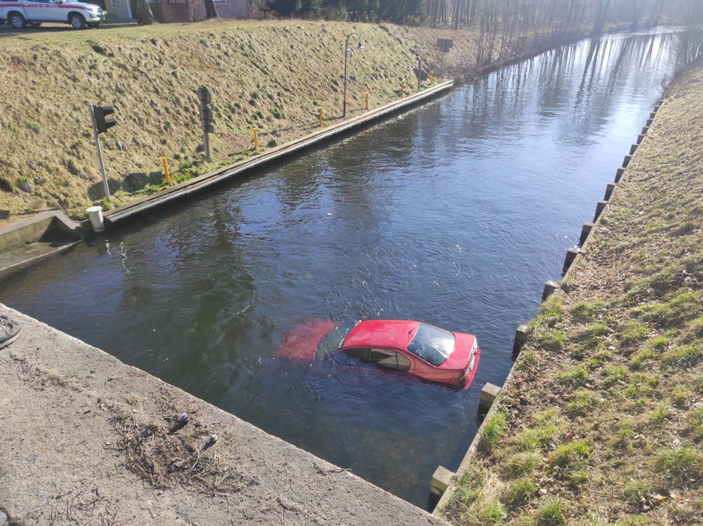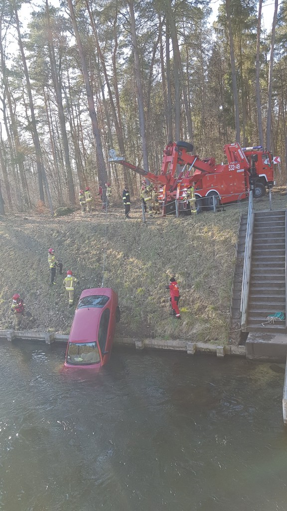 Kilkanaście minut przed godziną trzynastą 1 marca samochód osobowy wypadł z drogi, przebił bariery ochronne na śluzie i z wysokości około 8 metrów wpadł do kanału żeglownego łączącego jezioro Pauzeńskie z jeziorem Szeląg Wielki. Zdarzenie miało miejsce na drodze między Warlitami Wielkimi a Międzylesiem w gminie Ostróda. Osobowym nissanem podróżowały trzy osoby – dwóch mężczyzn i kobieta. Do akcji ratowniczej z ostródzkiej JRG wyjechały samochody: ratowniczo-gaśniczy, ratownictwa technicznego i rozpoznawczo ratowniczy. Dyspozycję wyjazdu z JRG Morąg otrzymał również ciężki samochód ratownictwa drogowego. Na miejsce akcji udał się Zastępca Komendanta Powiatowego Państwowej Straży Pożarnej w Ostródzie, który objął dowodzenie. Strażacy na miejsce wypadku dojechali po kilku minutach. Okazało się, że cała trójka podróżująca nissanem wydostała się z samochodu i wody. Strażacy sprawdzili stan poszkodowanych. Okazało się, że nie wymagali pomocy medycznej. Znajdujący się w wodzie samochód stwarzał zagrożenie ekologiczne. Mogło dojść do wycieku płynów eksploatacyjnych do wody. Ponadto auto blokowało szlak żeglowny. Strażacy przeprowadzili operację podjęcia samochodu z wody i wydobycia na linię brzegową. Działania te przeprowadziła Specjalistyczna Grupa Ratownictwa Technicznego „Ostróda”.