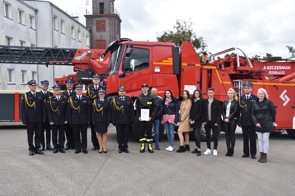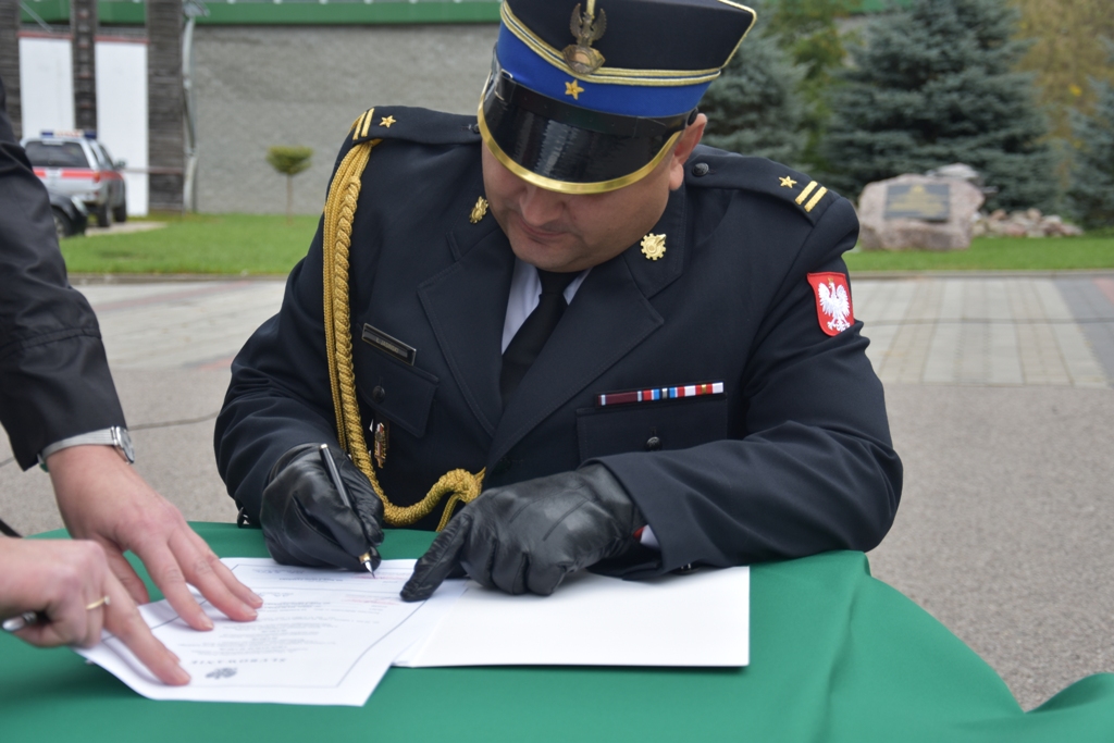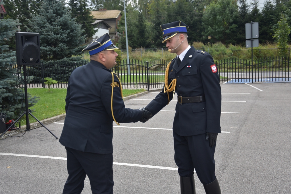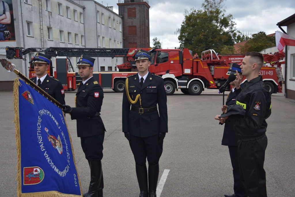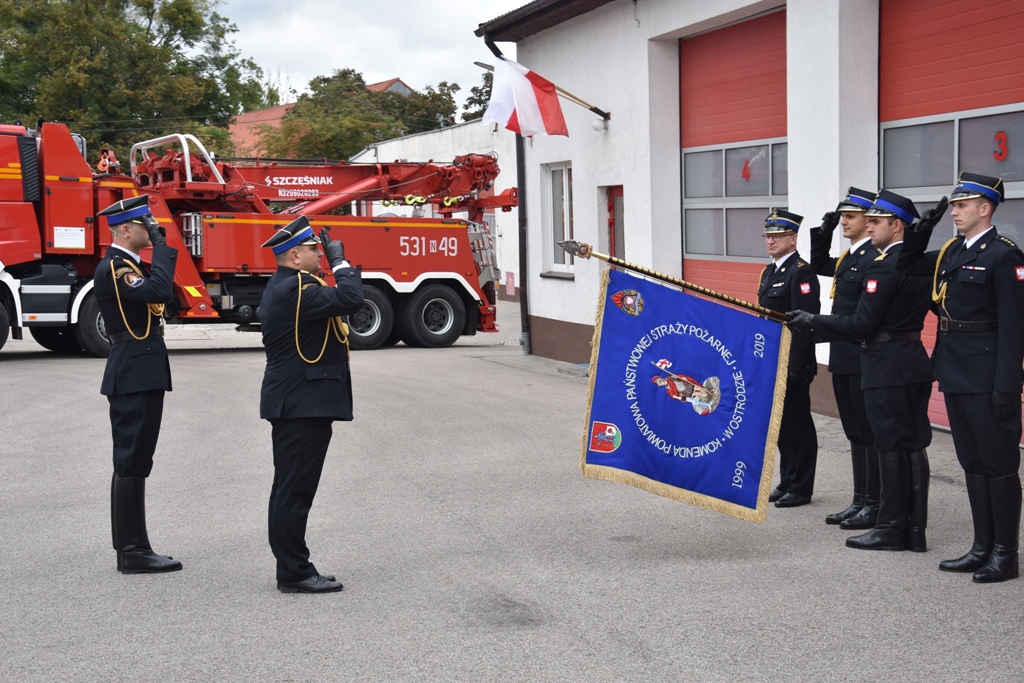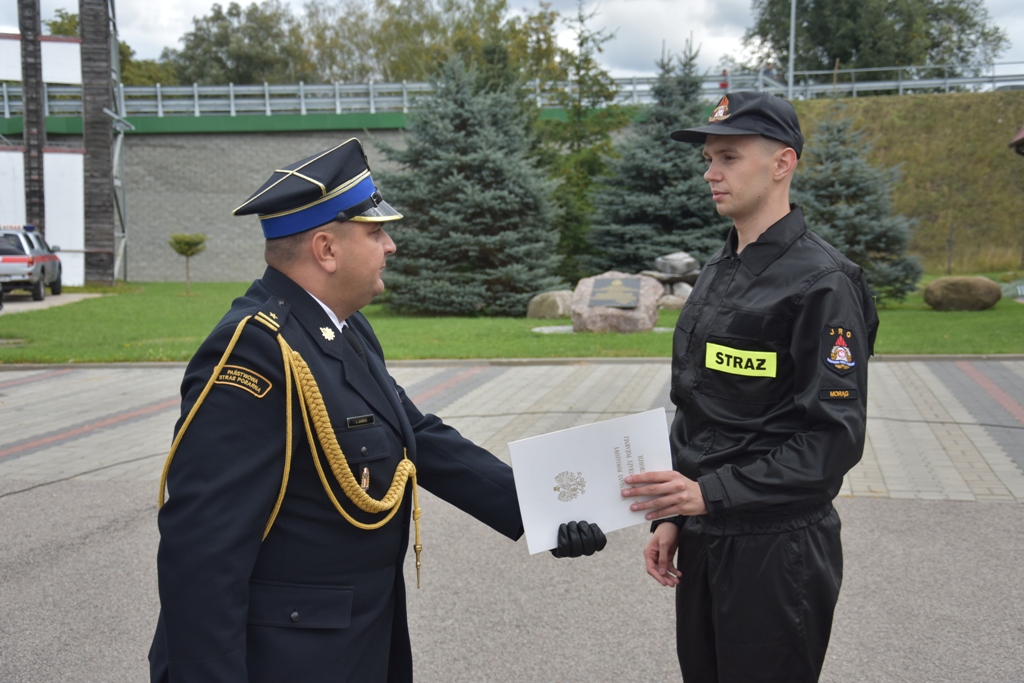 16 września na placu apelowym ostródzkiej Komendy Powiatowej Państwowej Straży Pożarnej odbyła się uroczysta zbiórka z okazji ślubowania nowo przyjętego funkcjonariusza. Ślubowanie na Sztandar Komendy Powiatowej PSP w Ostródzie złożył str. Oskar Myśliński, a przyjął mł. bryg. Łukasz Jasiński ostródzki Komendant Powiatowy PSP. Uroczysta zbiórka rozpoczęła się od złożenia meldunku Komendantowi Powiatowemu PSP przez dowódcę uroczystości mł. kpt. Krzysztofa Harasimowicza i przeglądu pododdziału. Następnie nowo przyjęty strażak złożył ślubowanie. W tej podniosłej chwili ślubującemu strażakowi oprócz funkcjonariuszy ostródzkiej Komendy Powiatowej PSP towarzyszyła również rodzina. Nie zabrakło chwil wzruszenia. Po zakończeniu uroczystej zbiórki nowo przyjęty strażak odebrał gratulacje i został powitany w szeregach Państwowej Straży Pożarnej przez kierownictwo komendy i funkcjonariuszy.