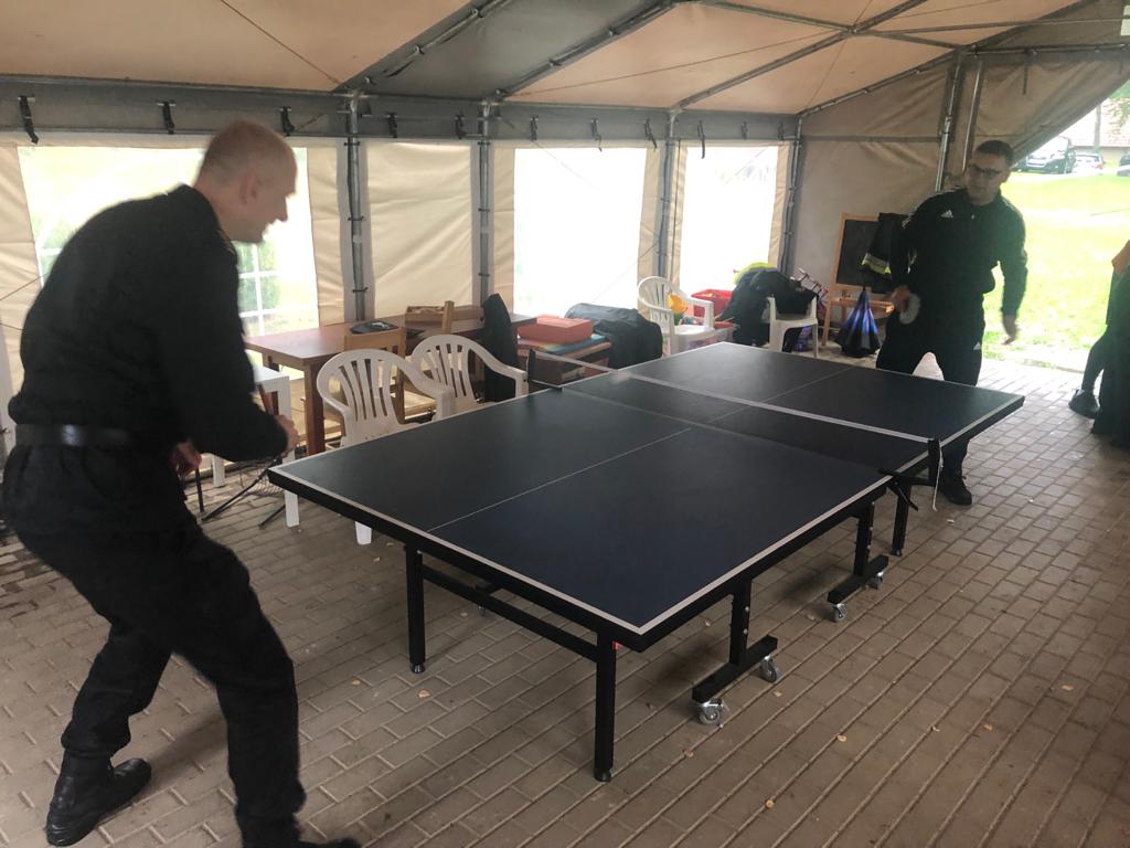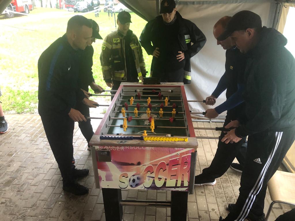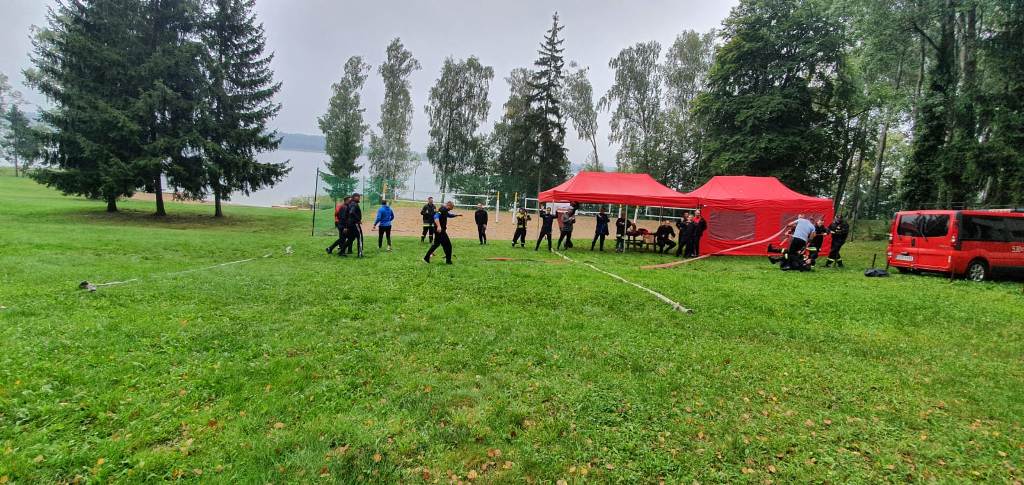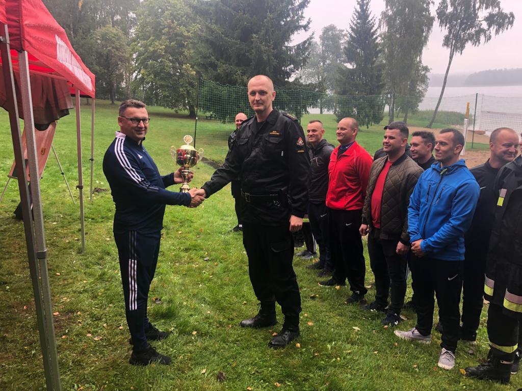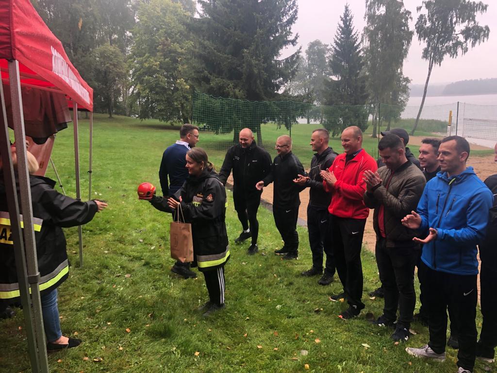 Sprawność fizyczna jest jednym z atrybutów, który jest konieczny w strażackiej służbie. Strażacy codziennie uczestniczą w zajęciach z wychowania fizycznego, a 16 września zajęcia te odbyły się w charakterze „międzywydziałowej” rywalizacji. W ośrodku wypoczynkowym w Kretowinach strażacy z ostródzkiej Komendy Powiatowej Państwowej Straży Pożarnej zorganizowali turniej sportowy. Do zawodów przystąpiły reprezentacje jednostek ratowniczo-gaśniczych w Ostródzie i Morągu oraz reprezentacja funkcjonariuszy systemu codziennego służby, na czele z ostródzkim Komendantem Powiatowym PSP. Pierwotnie planowano rozegrać trzy konkurencje: plażową piłkę siatkową, piłkę nożną oraz przeciąganie liny – węża strażackiego. Jednak aura tego dnia uniemożliwiła rozegranie dwóch pierwszych konkurencji. Zastąpiono je zawodami w tenisa stołowego i piłkarzyki, w których rywalizowali wytypowani przedstawiciele drużyn. W konkurencji przeciągania węża strażackiego udział wzięły drużyny w pełnym składzie. Turniej zakończył się sprawiedliwym remisem. Każda z drużyn triumfowała w jednej z konkurencji. Składamy podziękowania wszystkim, którzy przyczynili się do możliwości rozegrania strażackich zawodów sportowych, a w szczególności właścicielowi ośrodka wypoczynkowego w Kretowinach.