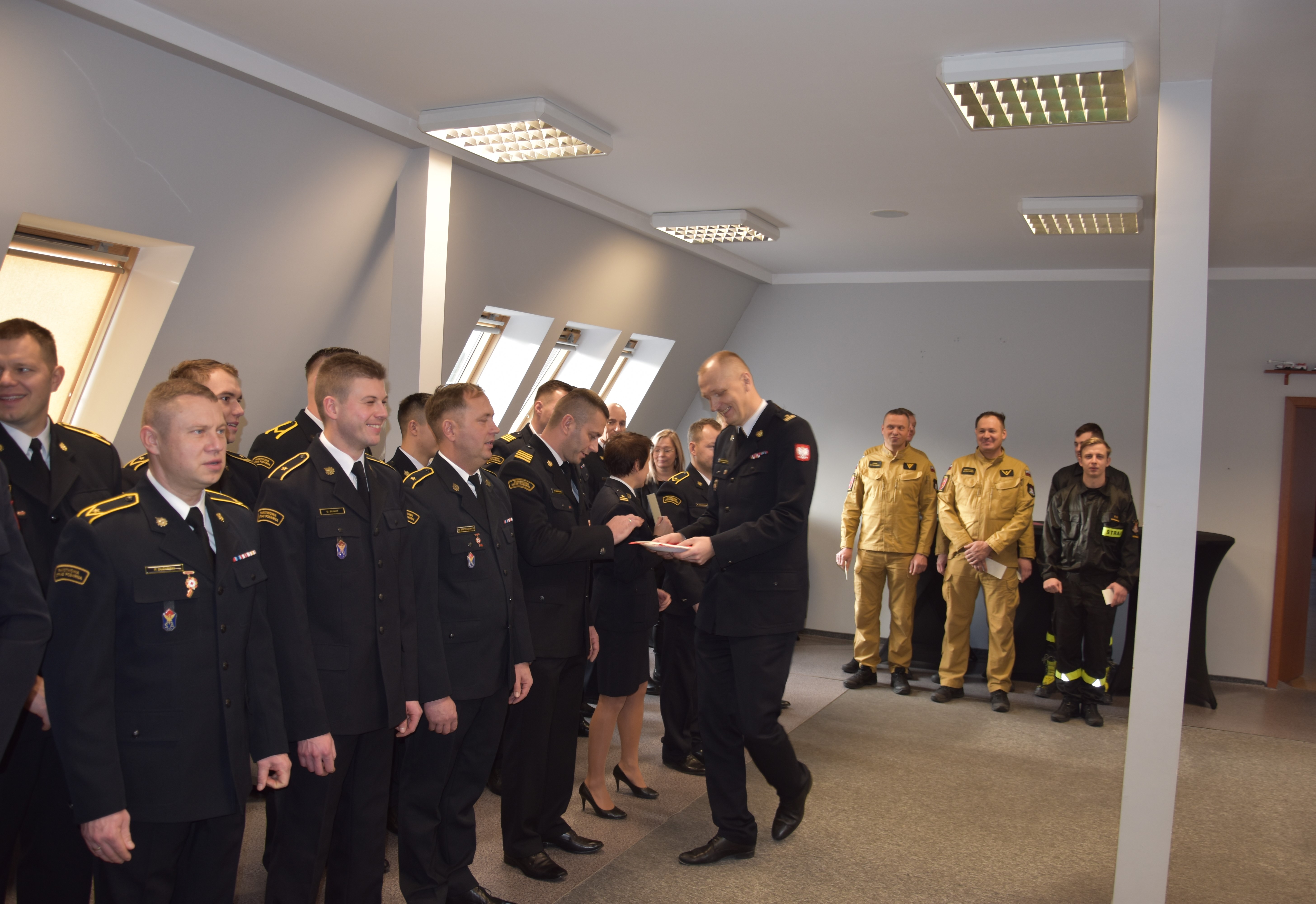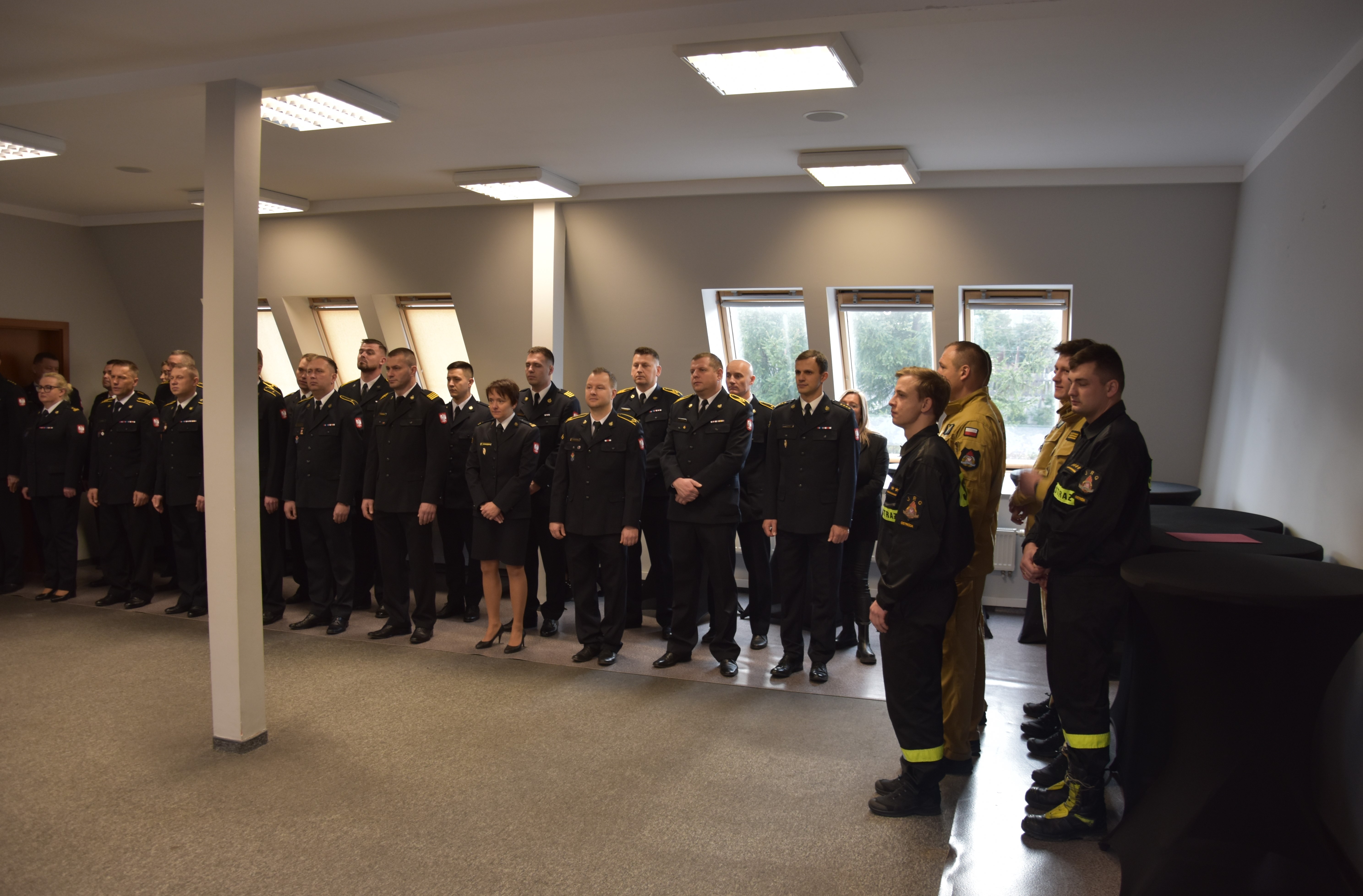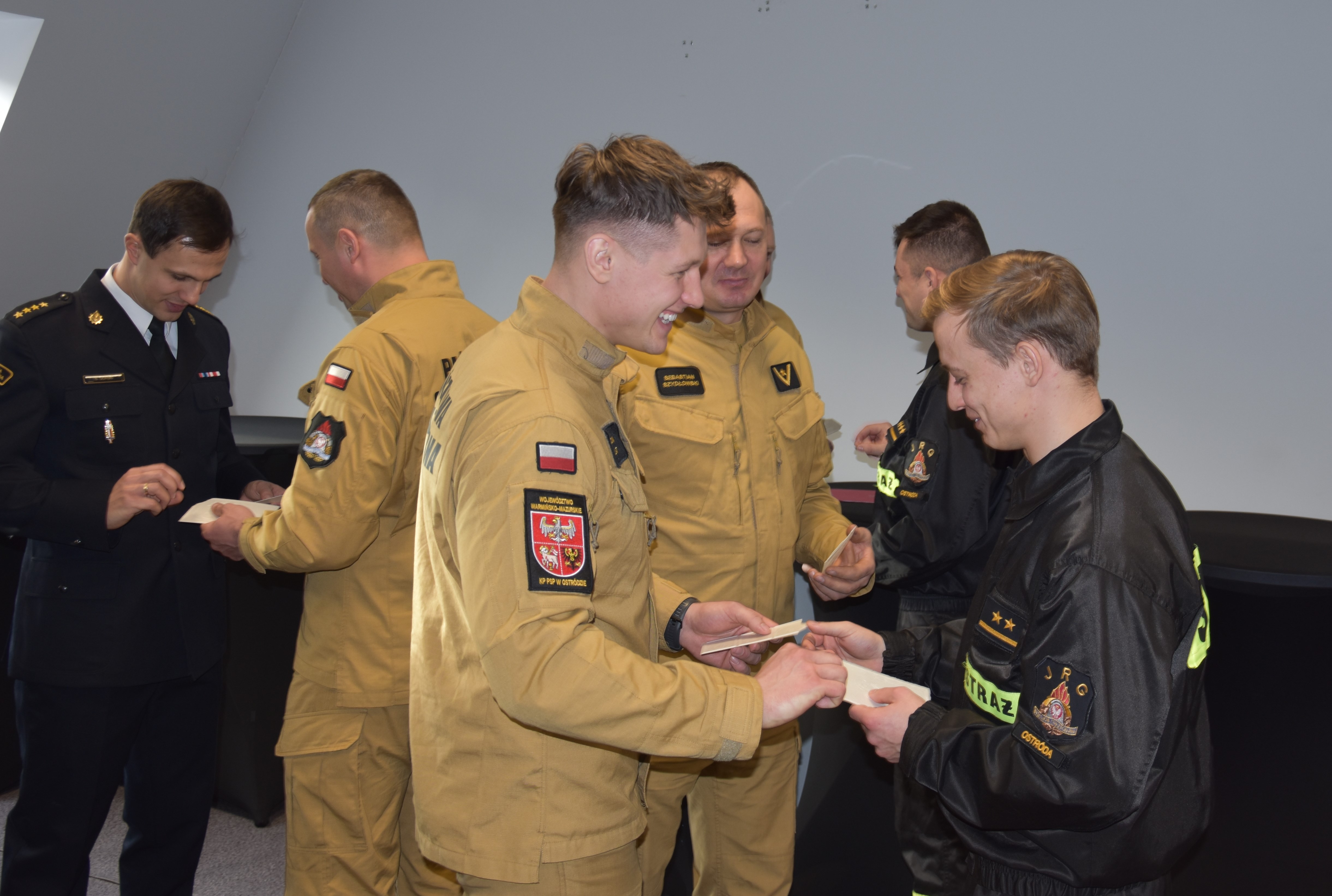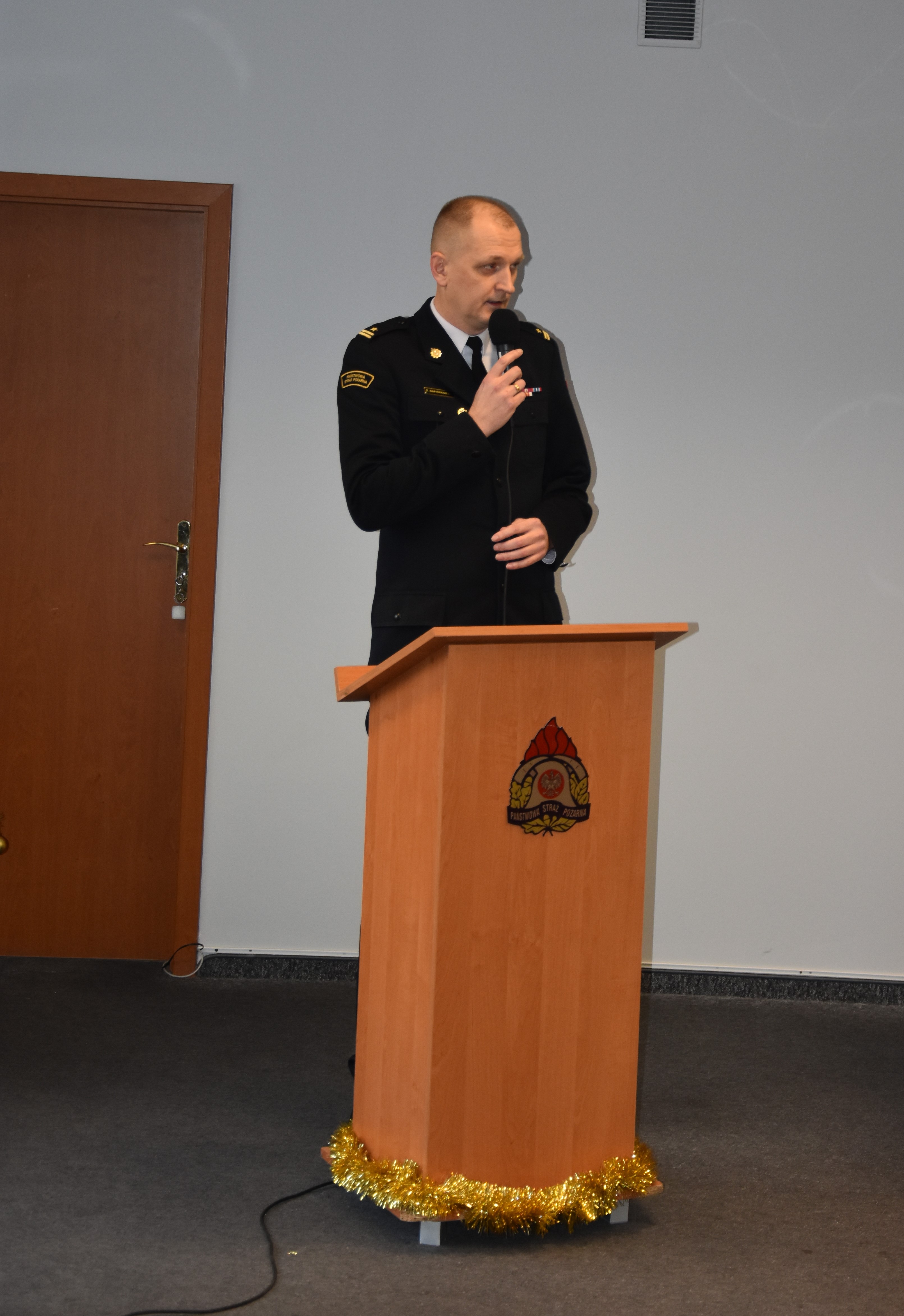 Komendant Powiatowy PSP w Ostródzie mł. bryg. Rafał Napiórkowski przywitał wszystkich zgromadzonych, podziękował za owocną współpracę w mijającym roku kalendarzowym i przekazał serdeczne życzenia na najbliższy świąteczny czas. Duszpasterskie słowo wygłosił ks. Stanisław Marczak. Po odczytaniu fragmentu Pisma Świętego przyszedł czas na przełamywanie się opłatkiem oraz wzajemne składanie życzeń.