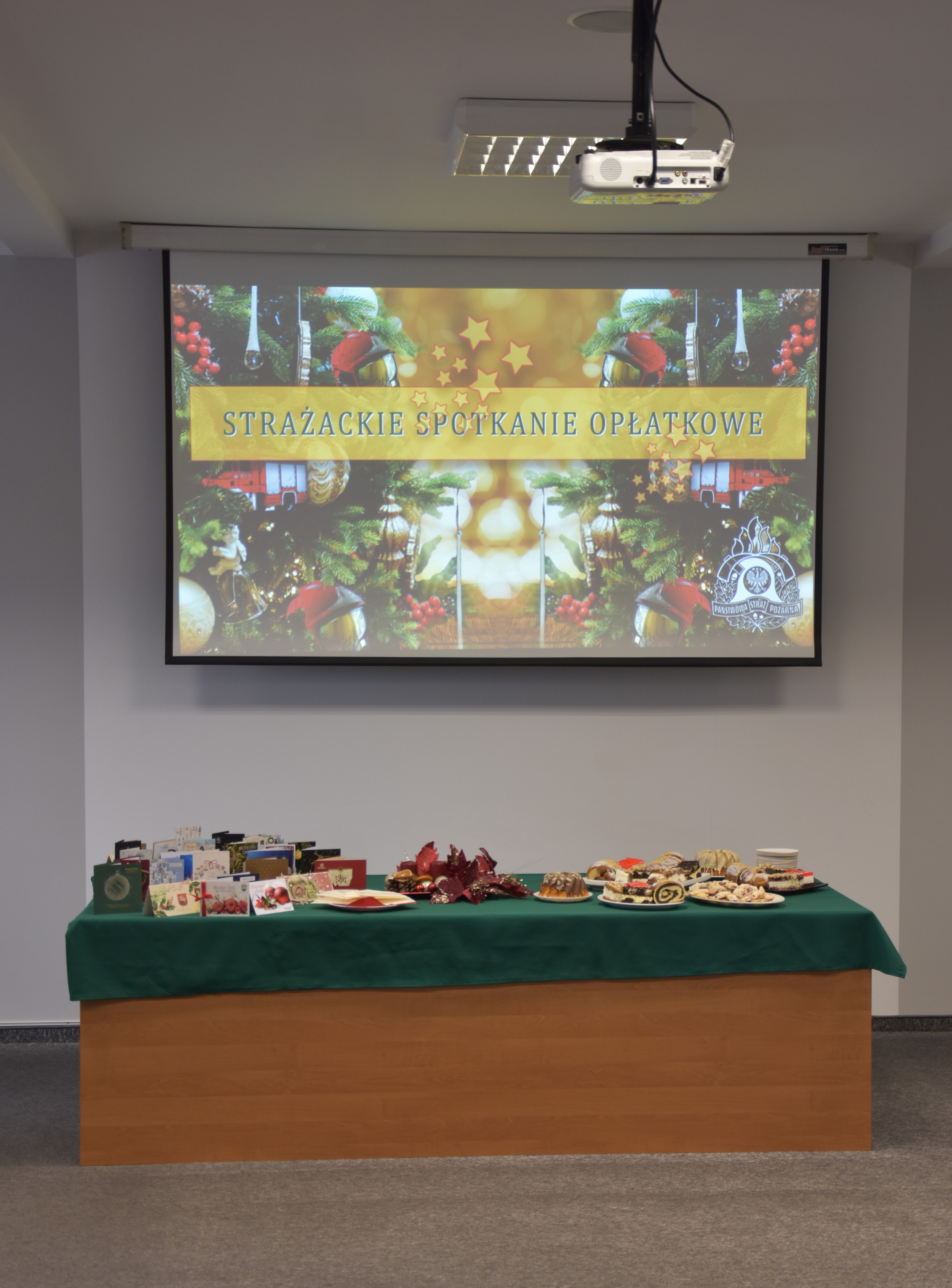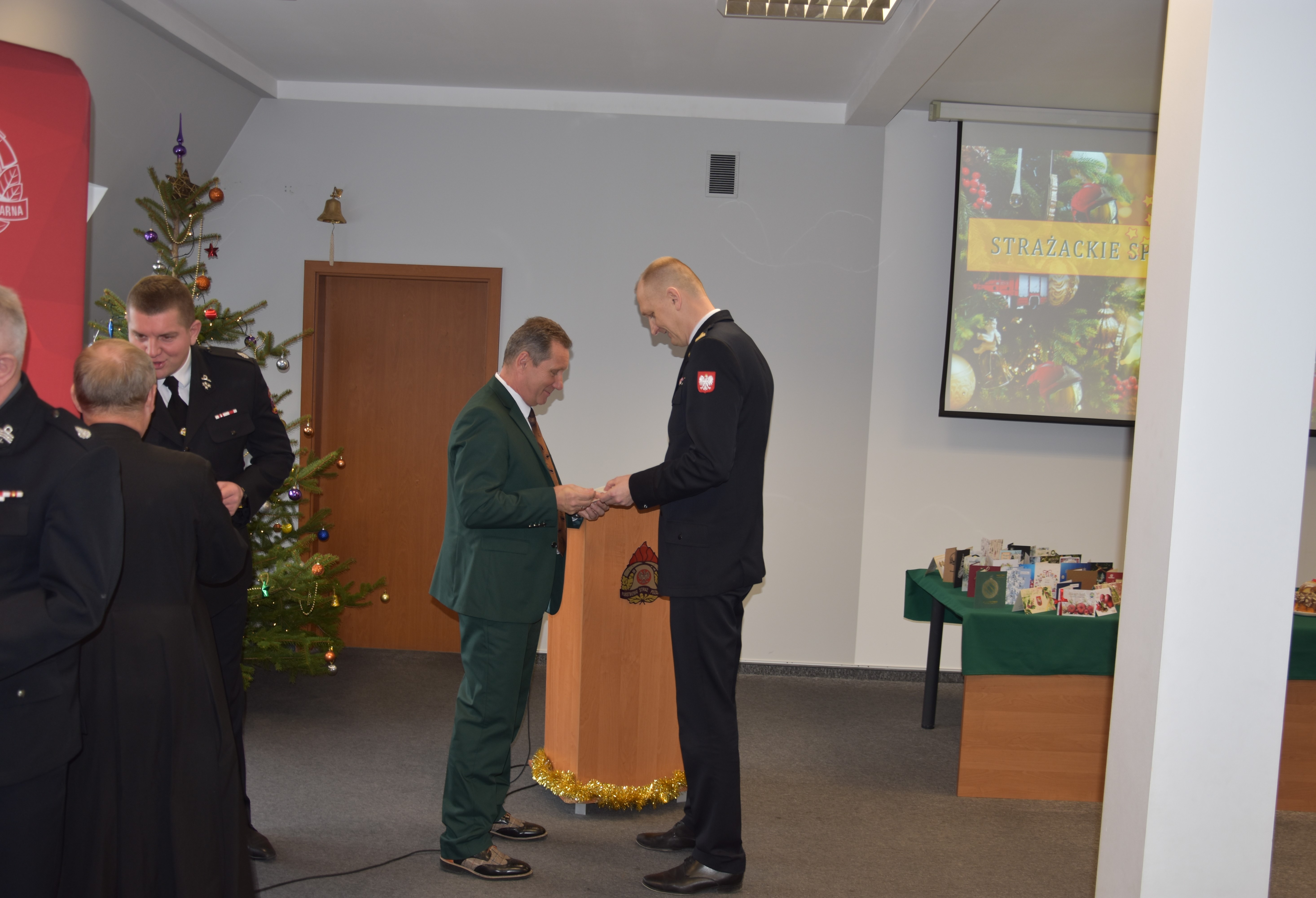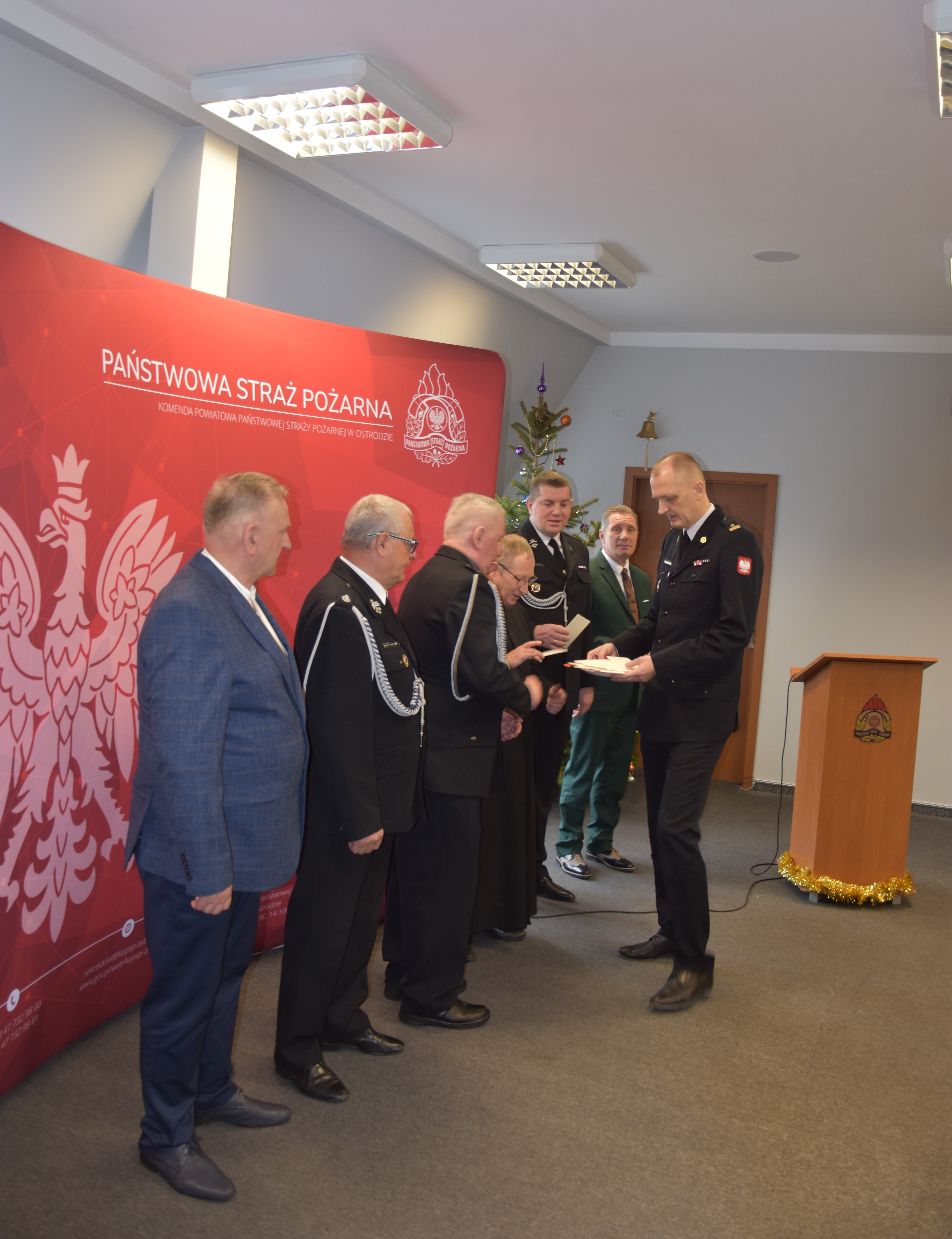 Z okazji zbliżających się Świąt Bożego Narodzenia w ostródzkiej Komendzie Powiatowej Państwowej Straży Pożarnej odbyło się tradycyjne spotkanie opłatkowe. 20 grudnia w sali konferencyjnej zgromadzili się strażacy, pracownicy cywilni oraz zaproszeni goście: Starosta Ostródzki Andrzej Wiczkowski, Prezes Zarządu Oddziału Powiatowego Związku OSP RP dh Ryszard Harasim wraz z członkami Prezydium zarządu, ksiądz proboszcz Parafii Pw. Św. Dominika Savio ks. Stanisław Marczak, a także kapelan powiatowy strażaków ksiądz Witold Palewski.