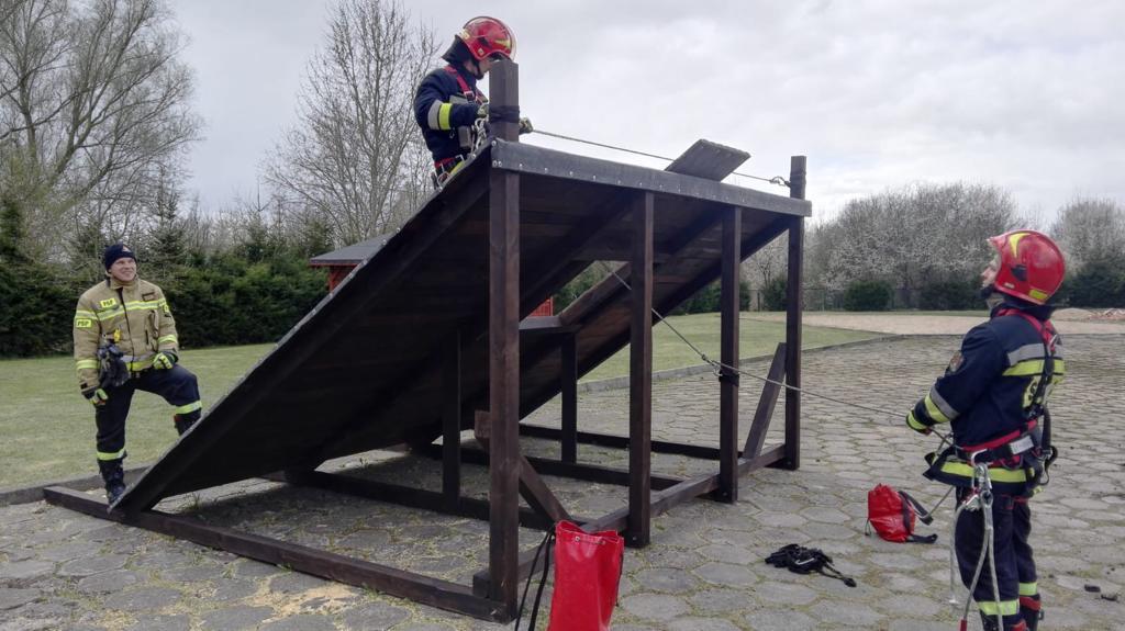 Ciągłe doskonalenie umiejętności zawodowych i dbałość o sprawność fizyczną to nierozłączne atrybuty strażackiego fachu. Pomimo ograniczonych możliwości przeprowadzania ćwiczeń i szkoleń, z uwagi na obowiązujący stan epidemii, na terenie kraju, strażacy z ostródzkiej Komendy Powiatowej PSP stale doskonalą swoje umiejętności zawodowe. Na terenie strażnic w Ostródzie i Morągu ćwiczą zagadnienia z dziedzin ratowniczych. W ostatnim okresie strażacy zrealizowali kilka własnych pomysłów stanowisk ćwiczebnych. I tak w JRG Morąg powstało stanowisko do ratownictwa wysokościowego i gaszenia pożarów dachów oraz udoskonalony został tor przeszkód imitujący akcje ratownicze w ciasnych pomieszczeniach. W Ostródzie zmodyfikowane zostało stanowisko do ćwiczeń z zakresu ratownictwa w studniach i wykopach ziemnych. Wszystkie prace strażacy wykonali samodzielnie. Stanowiska ćwiczebne dają możliwość utrzymywania odpowiedniego poziomu umiejętności zawodowych. Strażacy ćwiczą różnego rodzaju symulowane sytuacje, które mogą wydarzyć się podczas rzeczywistych działań ratowniczo-gaśniczych.