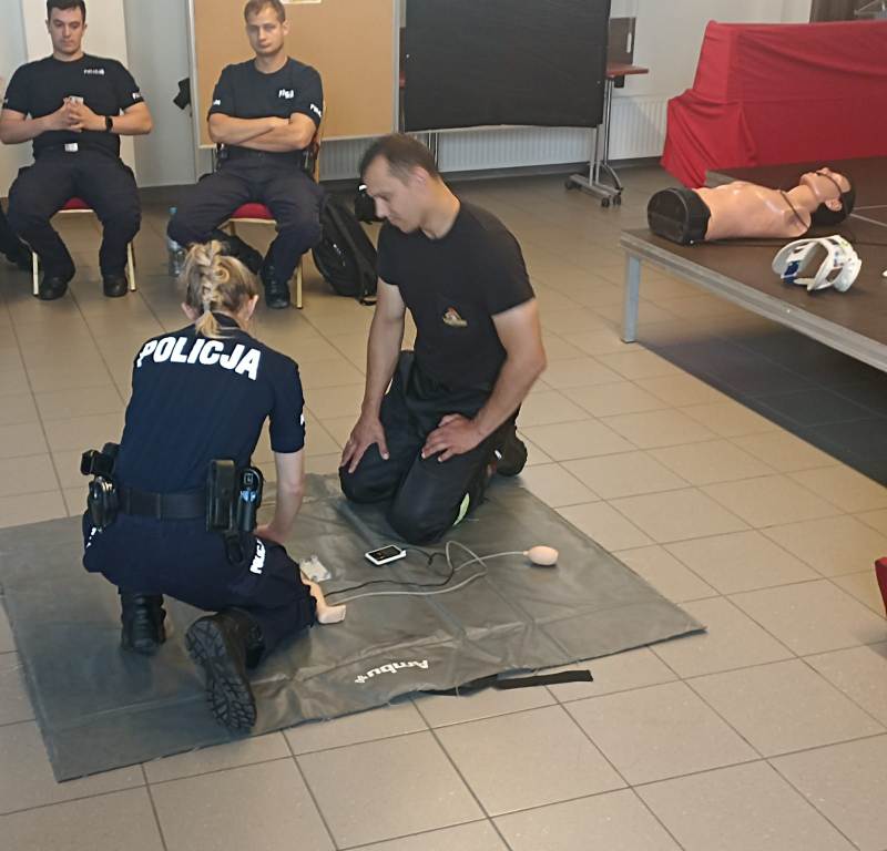 Strażacy prowadzili szkolenia z zakresu kwalifikowanej pierwszej pomocy medycznej dedykowane policjantom