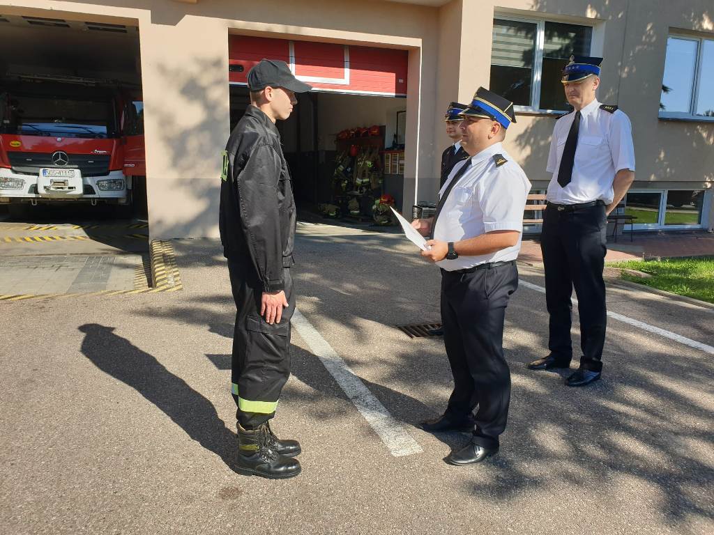 19 czerwca ulicami Garwolina w woj. mazowieckim odbył się bieg na dystansie 10 kilometrów, w ramach którego odbył się Bieg Strażaków o Puchar Komendanta Głównego Państwowej Straży Pożarnej, zaliczany do Pucharu Polski Strażaków PSP w Biegach. Udział w nim wziął asp. Damian Błaut funkcjonariusz z naszej komendy, który na co dzień pełni służbę w jednostce ratowniczo-gaśniczej w Morągu. Asp. Błaut spisał się znakomicie, w klasyfikacji generalnej z czasem 33:52 zdobył 3 miejsce. Komendant Powiatowy PSP w Ostródzie mł. bryg. Łukasz Jasiński wraz ze swoim zastępcą st. kpt. Rafałem Napiórkowskim w piątek 24 czerwca podczas zmiany służby w Morągu pogratulowali wspaniałego wyniku asp. Damianowi Błautowi i wręczyli mu wyróżnienie.