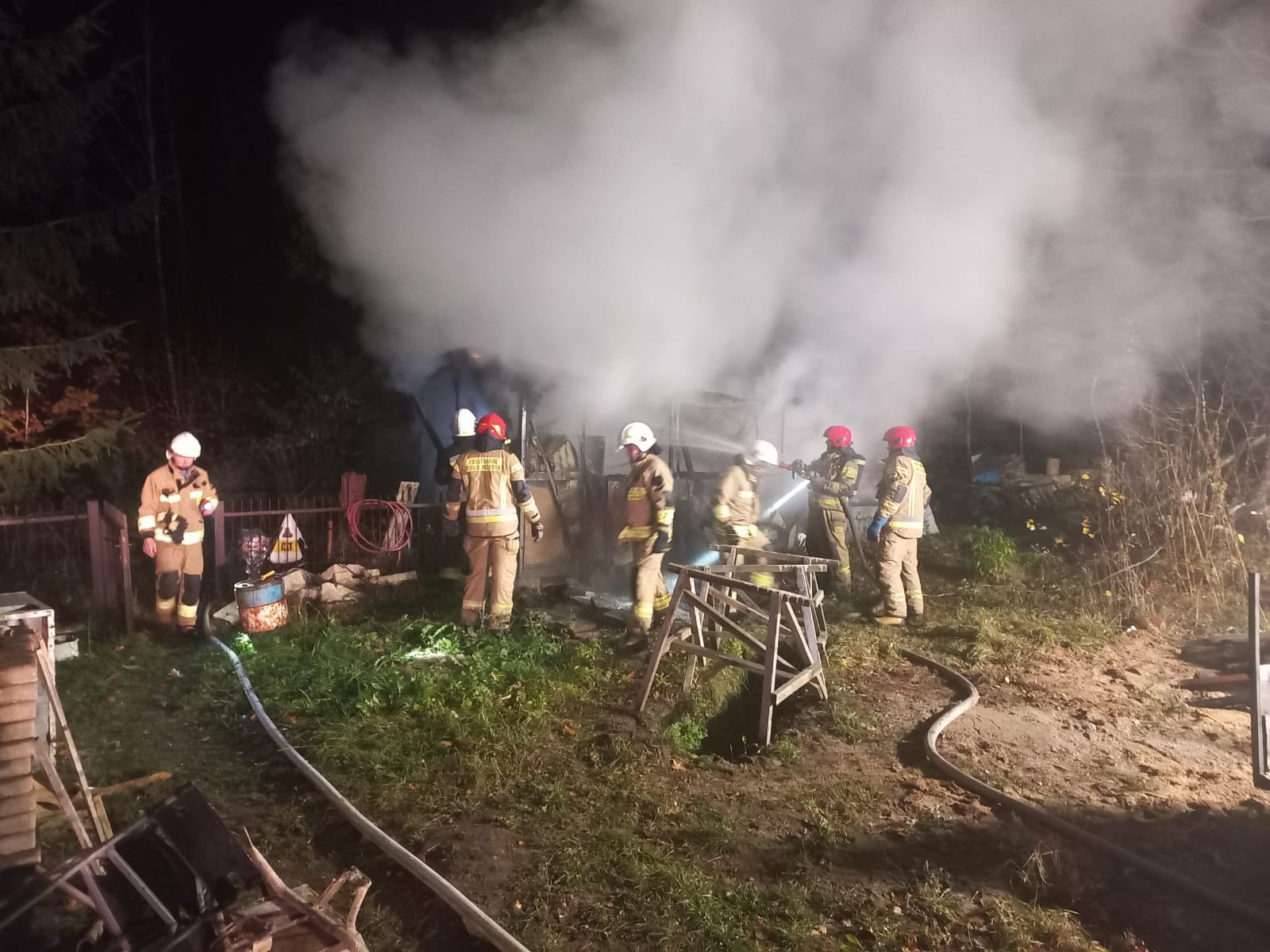 Po dotarciu na miejsce potwierdziło się, że pali się barakowóz. Właściciel posesji poinformował, że w barakowozie pomieszkuje bezdomny mężczyzna w wieku około 60 lat i może on znajdować się w środku.