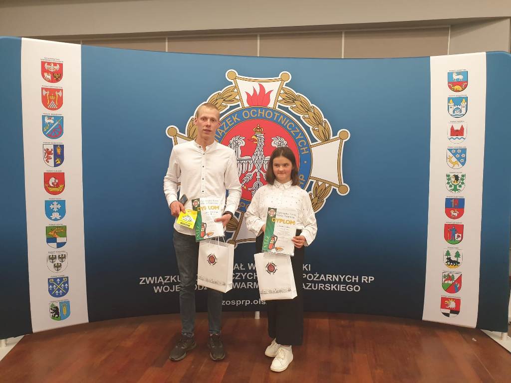 20 maja w Bibliotece Uniwersyteckiej w Olsztynie odbyły się eliminacje wojewódzkie Ogólnopolskiego Turnieju Wiedzy Pożarniczej. Powiat ostródzki reprezentowali laureaci wyłonieni w eliminacjach powiatowych. W kategorii I szkół podstawowych (klasy I-IV) do turnieju w Olsztynie przystąpił Julian Witek, w kategorii II szkoły podstawowe (klasy IV-VIII) nasz powiat reprezentowała Amelia Chodoń, a w kategorii III szkoły ponadpodstawowe Jakub Rafiński. Podobnie, jak w eliminacjach powiatowych turniej składał się z dwóch części: testu pisemnego, po którym troje najlepszych uczniów w każdej kategorii przystąpiło do ustnego sprawdzianu wiedzy. W kategorii II znakomicie spisała się Amelia Chodoń ze Szkoły Podstawowej w Szyldaku. Zajęła II miejsce, co dało jej kwalifikacje do turnieju na szczeblu krajowy. Równie dobre miejsce zajął Jakub Rafiński reprezentujący Zespół Szkół Rolniczych w Ostródzie. Tak, jak młodsza koleżanka uplasował się na II miejscu i zdobył kwalifikacje na szczebel krajowy turnieju.
