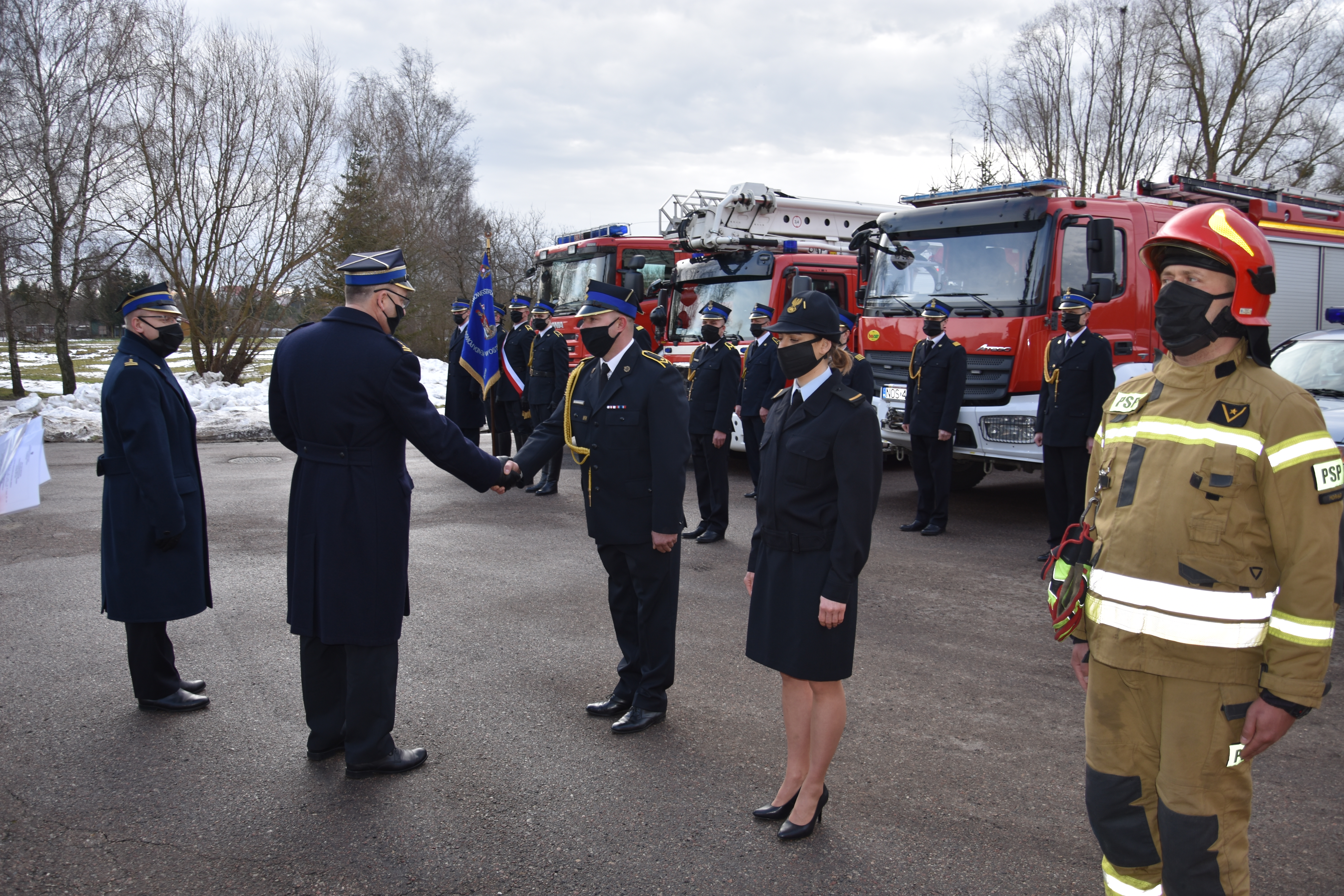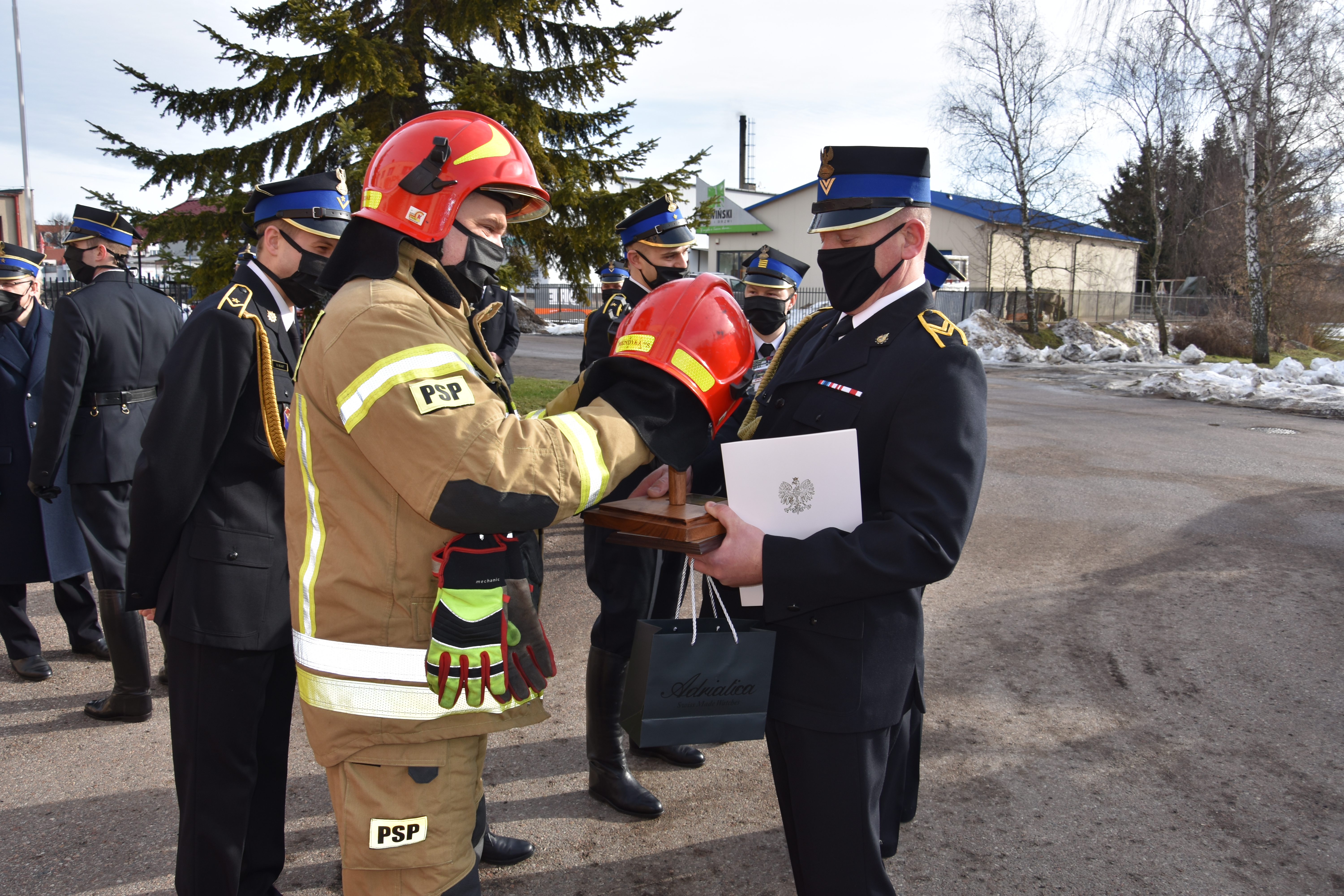 Piątek 26 lutego był ostatnim dniem służby st. asp. Piotra Homzy i st. ogn. Sławomira Mendyki. Tego dnia w Morągu, z zachowaniem reżimu sanitarnego odbyła się uroczysta zbiórka, podczas której pożegnano odchodzących na emeryturę strażaków. Komendant Powiatowy PSP w Ostródzie st. bryg. Tomasz Ostrowski przybliżył wszystkim zgromadzonym przebieg służby st. asp. Piotra Homzy i st. ogn. Sławomira Mendyki. Podziękował im za zaangażowanie i wkład pracy, jakie włożyli w działalność na rzecz ochrony przeciwpożarowej powiatu ostródzkiego.