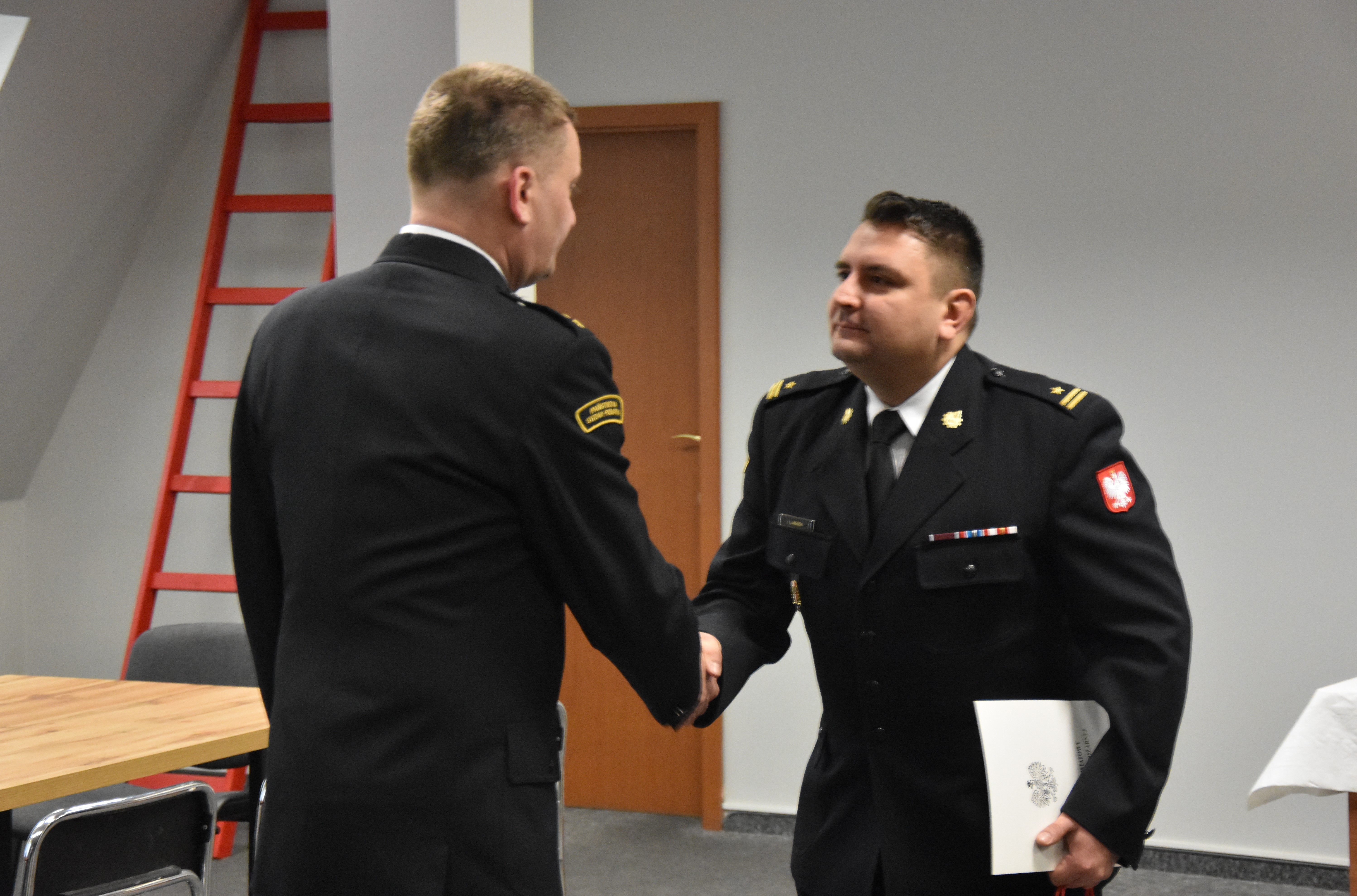 Po uroczystej zmianie służby w imieniu załogi Komendant Powiatowy PSP mł. bryg. Łukasz Jasiński złożył st. kpt. Grzegorzowi Różańskiemu podziękowania za dotychczas pełnioną służbę i wzorową współpracę. Następnie funkcjonariusze i pracownicy cywilni wręczyli swojemu koledze symboliczne upominki wraz z gratulacjami awansu i życzeniami dalszych sukcesów zawodowych oraz w życiu prywatnym.