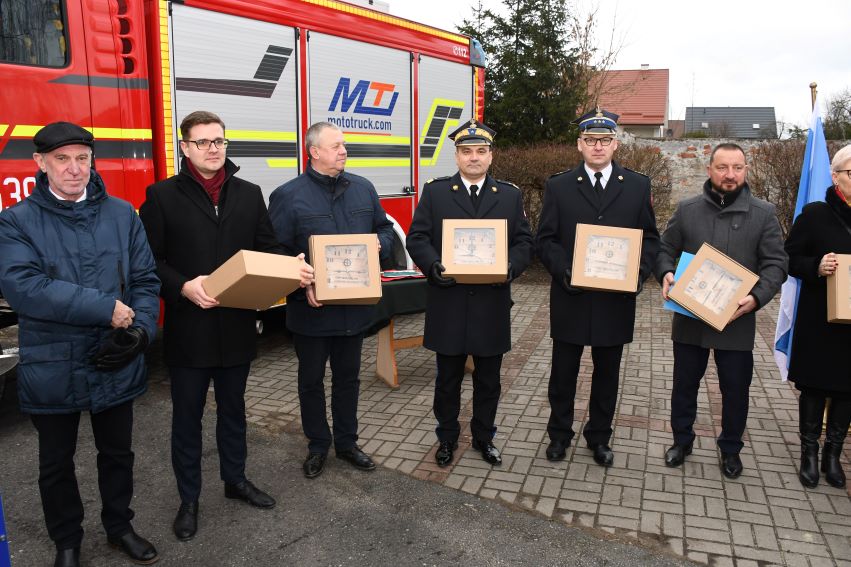 Na zakończenie uroczystości Naczelnik OSP Miłomłyn dh Karol Fafiński wyraził słowa podziękowania oraz wręczył symboliczne upominki wszystkim osobom, które wsparły jednostkę w pozyskaniu nowego pojazdu.
