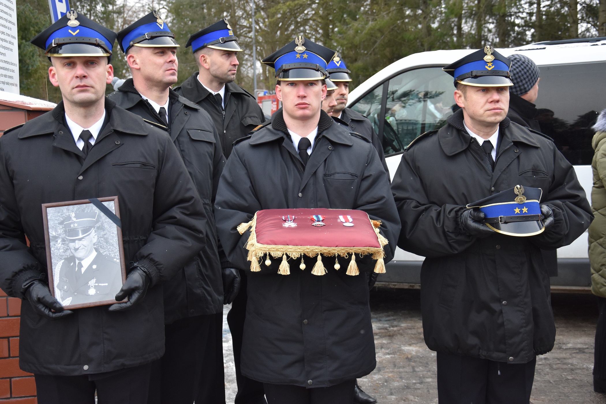 W uroczystości pogrzebowej udział brali: Warmińsko-Mazurski Komendant Wojewódzki Państwowej Straży Pożarnej st. bryg. Tomasz Ostrowski, Komendant Powiatowy PSP w Ostródzie mł. bryg. Rafał Napiórkowski wraz ze swoim zastępcą st. kpt. Łukaszem Zaniewskim, Komendanci Miejscy oraz Powiatowi PSP z naszego województwa, Prezes Zarządu Oddziału Powiatowego Związku Ochotniczych Straży Pożarnych Rzeczypospolitej Polskiej Ryszard Harasim, funkcjonariusze oraz pracownicy cywilni KP PSP w Ostródzie, funkcjonariusze z pozostałych komend województwa Warmińsko-Mazurskiego. Ponadto w wydarzeniu uczestniczyły poczty sztandarowe: Komendy Wojewódzkiej PSP w Olsztynie, poczet sztandarowy Komendy Powiatowej PSP w Ostródzie, poczet sztandarowy OSP w Morągu oraz Warmińsko-Mazurska Kompania Honorowa PSP.