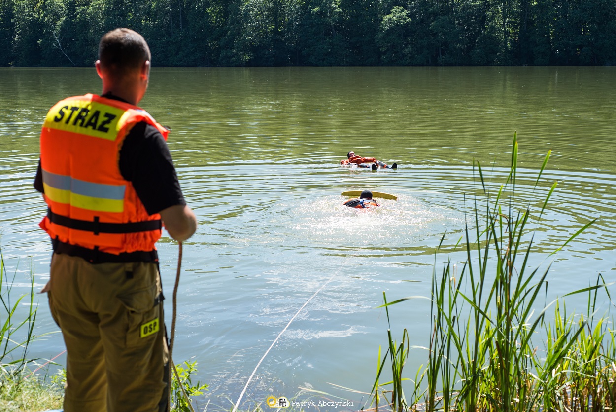 - Działania ratownicze na obszarach wodnych – druhowie ćwiczyli praktyczne podejmowanie osoby tonącej, ewakuację na brzeg oraz udzielanie kwalifikowanej pierwszej pomocy przy podtopieniach. Dodatkowo zweryfikowano sprzęt na wyposażeniu jednostek OSP oraz wskazano bezpieczne metody niesienia pomocy na akwenach.