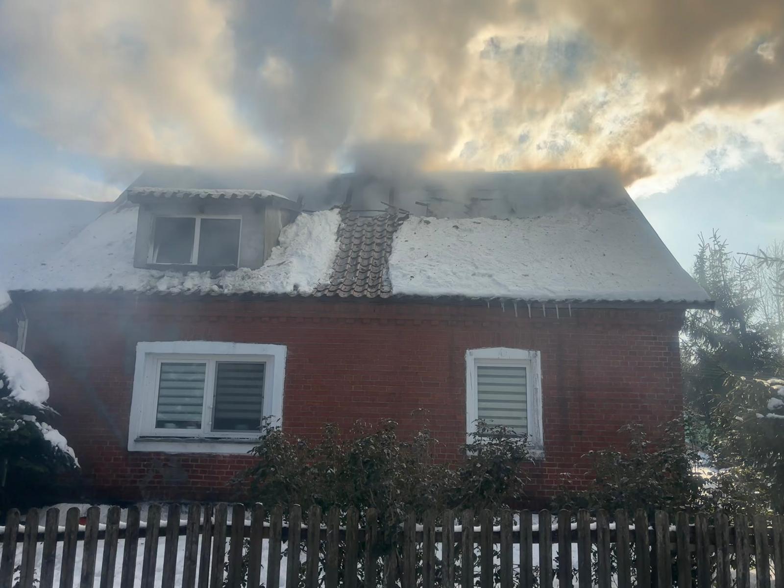 O godzinie 11:40 przyjęliśmy zgłoszenie o pożarze domku jednorodzinnego w miejscowości Kątno. Pożarem objęte było poddasze budynku oraz konstrukcja dachu. W zdarzeniu udział brało łącznie 8 zastępów z Jednostki Ratowniczo-Gaśniczej w Ostródzie oraz Ochotniczych Straży Pożarnych w Idzbarku i Starych Jabłonkach. Spaleniu uległa drewniana konstrukcja dachu, stropu oraz wyposażenie. Działania zakończono po godzinie 15:00.