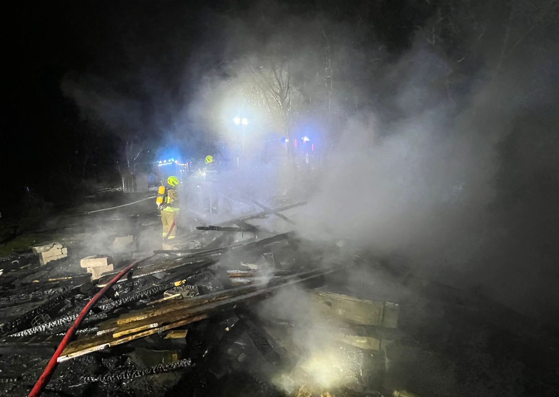 Tego samego dnia o godzinie 22:14 dwa zastępy z JRG Ostróda oraz zastęp z OSP Ostróda podjęły interwencję w związku z pożarem drewnianej altany przy ul. Mazurskiej. W momencie przyjazdu na miejsce zdarzenia budynek był całkowicie objęty pożarem. Strażacy podali wodę z dwóch linii gaśniczych. Wewnątrz budynku zlokalizowano rozgrzana butlę z gazem, którą wyniesiono na zewnątrz i poddano chłodzeniu. Wskutek pożaru drewniana konstrukcja budynku zawaliła się. Niezbędne były także prace rozbiórkowe pozostałej części spalonej konstrukcji.