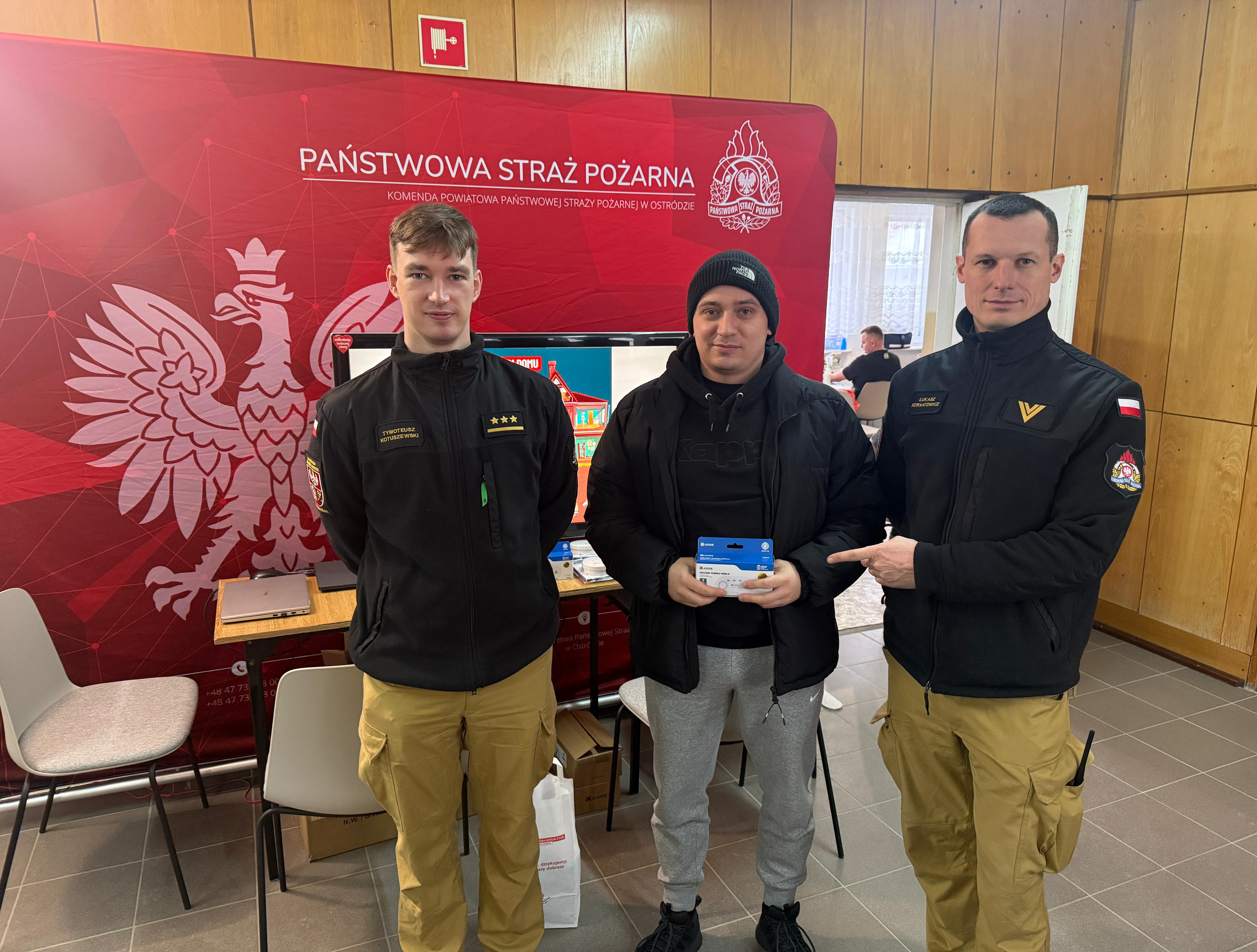 W ramach akcji Prewencji Społecznej Państwowej Straży Pożarnej pn. #CzujkaNaStrażyTwojegoBezpieczeństwa wręczyliśmy autonomiczne czujki dymu i tlenku węgla osobom, które dokonały donacji. W międzyczasie w oczekiwaniu w procesie rejestracji dawców prezentowaliśmy infografiki przedstawiające zagrożenia związane z tlenkiem węgla oraz informujące o optymalnym rozmieszczeniu czujek.