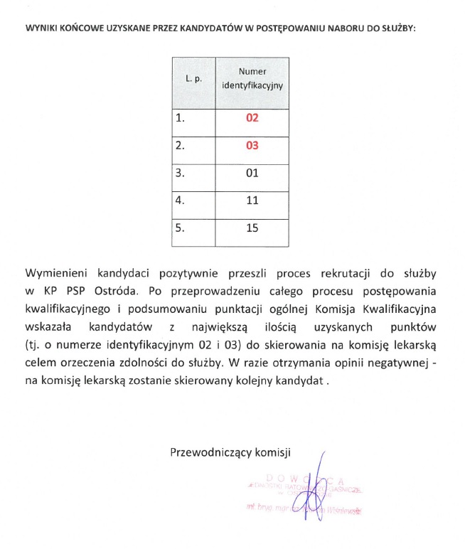 Wyniki końcowe naboru do służby w KP PSP w Ostródzie