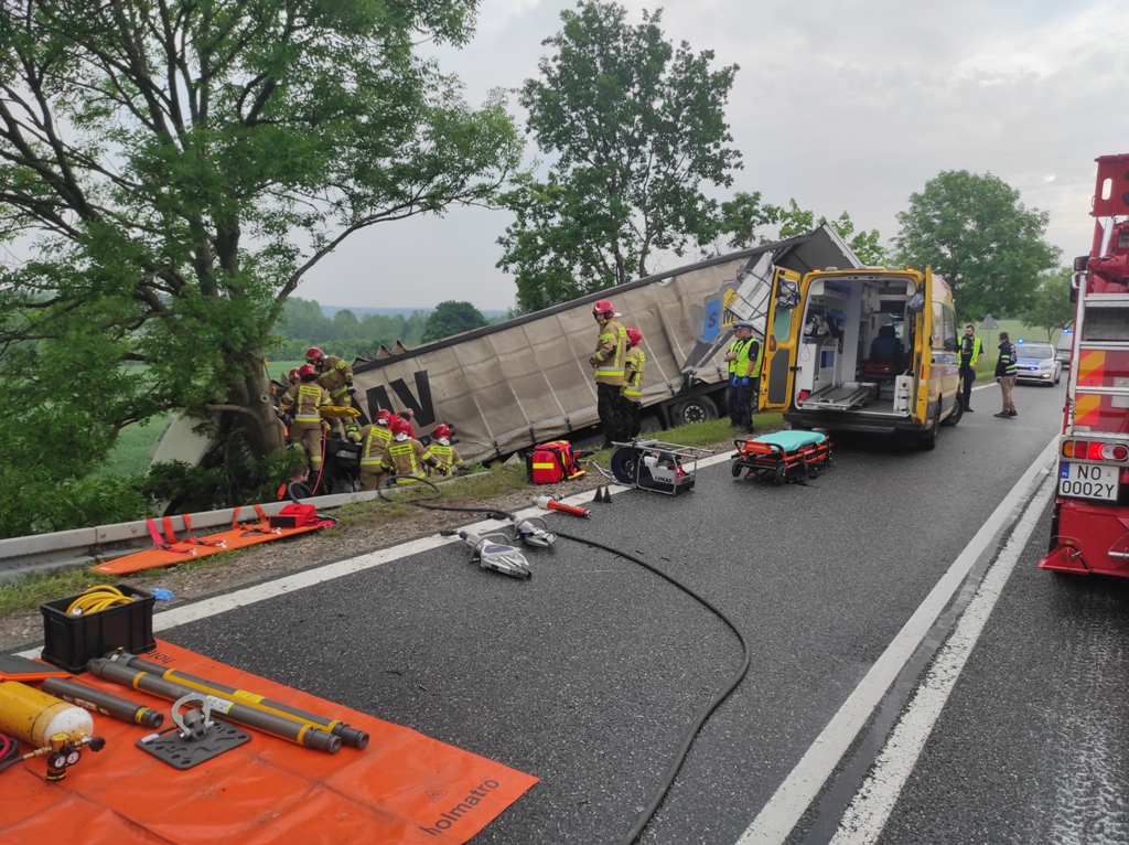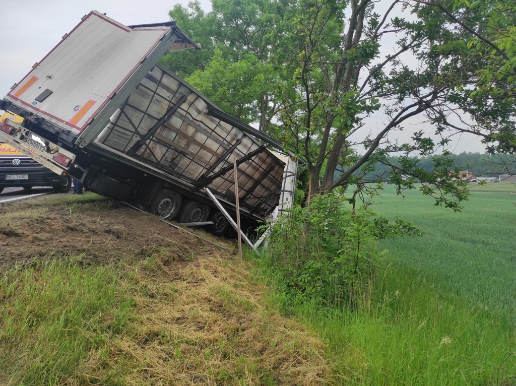 Wypadek na DK16 – ciężarówka uderzyła w drzewo