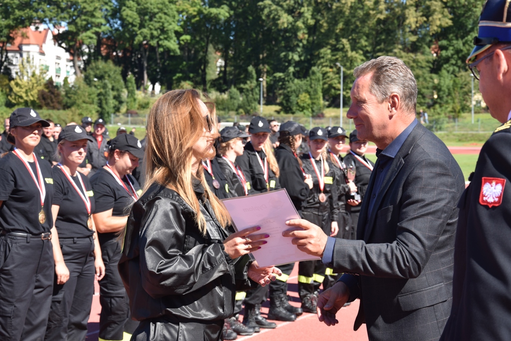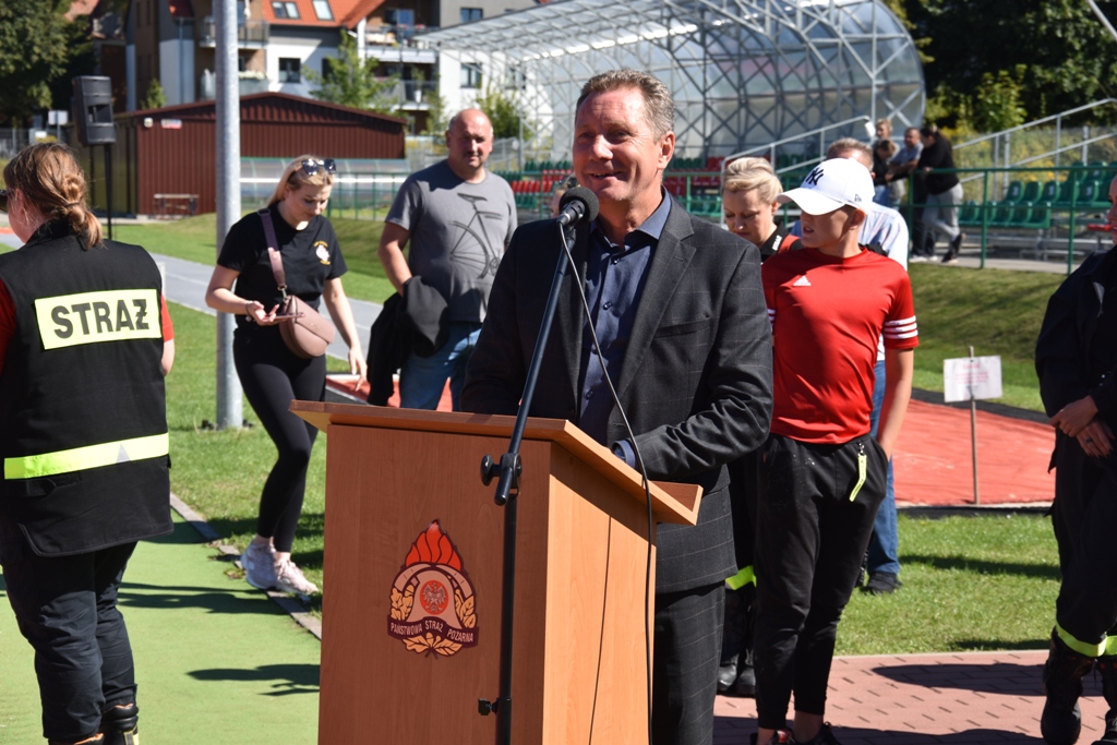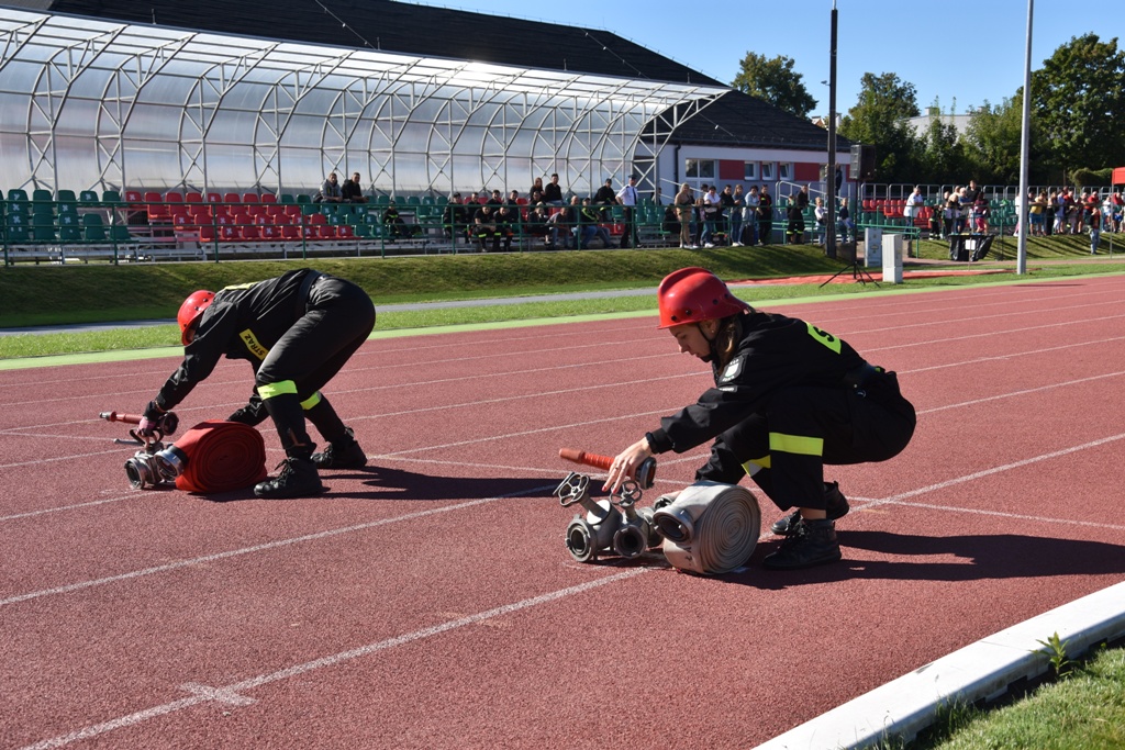 W sobotę, 3 września ostródzki stadion lekkoatletyczny był areną sportowej rywalizacji jednostek Ochotniczych Straży Pożarnych powiatu ostródzkiego. Do zawodów przystąpiły cztery drużyny żeńskie i jedenaście męskich. Byli to zwycięzcy zawodów na poziomie gminnym w roku 2019 i 2022. Zawody rozpoczęły się od złożenia meldunku Prezesowi Zarządu Oddziału Wojewódzkiego Związku OSP RP dh Gustawowi Markowi Brzezinowi, który złożył dh Marek Ostrowski z OSP Ostróda. Na zawody przybyli między innymi Gustaw Marek Brzezin Marszałek Województwa Warmińsko Mazurskiego jednocześnie Prezes ZOWZOSP RP, Zastępca Warmińsko-Mazurskiego Komendanta Wojewódzkiego Państwowej Straży Pożarnej st. bryg. Tomasz Ostrowski, Starosta Ostródzki Andrzej Wiczkowski, mł. bryg Łukasz Jasiński Komendant Powiatowy PSP w Ostródzie wraz z zastępcą st. kpt. Rafałem Napiórkowskim, st. bryg. Piotr Wlazłowski iławski Komendant Powiatowy PSP wraz z zastępcą st. kpt. Bogdanem Grzymowiczem, Dyrektor Wykonawczy ZOWZOSP RP dh Maciej Jasiński, Prezes ZOSP RP dh Ryszard Harasim oraz samorządowcy z powiatu ostródzkiego. Komisję sędziowską powołał Komendant Powiatowy PSP w Iławie spośród funkcjonariuszy KP PSP Iława pod przewodnictwem st. kpt. Piotra Szyslera. Rywalizacja sportowa była zacięta, ale w duchu fair play. Pierwszą konkurencją była sztafeta pożarnicza 7 x 50 metrów z przeszkodami. Zawodnicy musieli pokonać między innymi slalom pomiędzy tyczkami, przebiec po równoważni, czy podłączyć wąż gaśniczy do rozdzielacza i prądownicy gaśniczej. Drugą konkurencją było ćwiczenie bojowe. Zawodnicy w tym przypadku na czas sprawiali wężową linię ssawną oraz dwie gaśnicze. Przy pomocy strumienia wody musieli strącić z podestów przeszkody. Zgodnie z regulaminem suma punktów przyznanych po dwóch konkurencjach dawała wynik w klasyfikacji generalnej. Przy czym za wykonanie konkurencji w jak najkrótszym czasie, drużyna proporcjonalnie otrzymywała najmniejszą liczbę punktów. Mistrzyniami Powiatu w kategorii drużyn kobiecych zostały druhny z OSP Jurki z gminy Morąg, srebrny medal przypadł druhnom z OSP Miłakowo, na trzecim stopniu podium stanęła kobieca drużyna z OSP Smykówko – gm. Ostróda. Mistrzami Powiatu w kategorii drużyn męskich została drużyna z OSP Miłomłyn, drugie miejsce zajęli druhowie z OSP Ostróda, a brązowymi medalistami druhowie z OSP Jurki – gm. Morąg. Puchary, medale, dyplomy oraz nagrody wręczyli drużynom komendanci PSP, samorządowcy oraz dyrektor i prezes ZOSP RP.