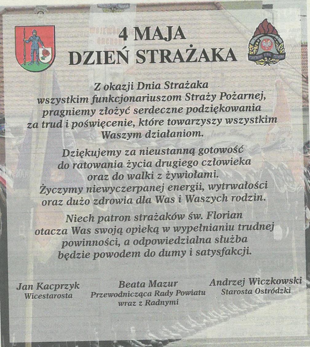Z okazji Dnia Strażaka napłynęły do nas życzenia