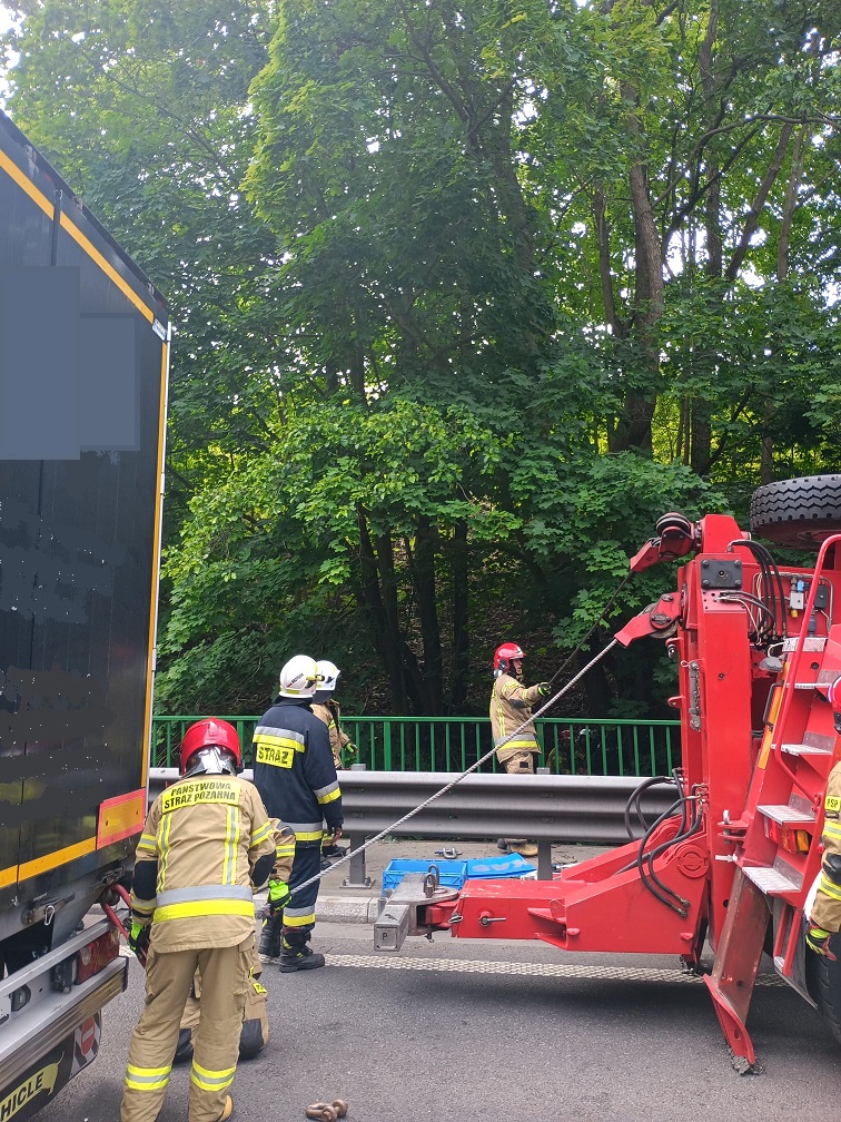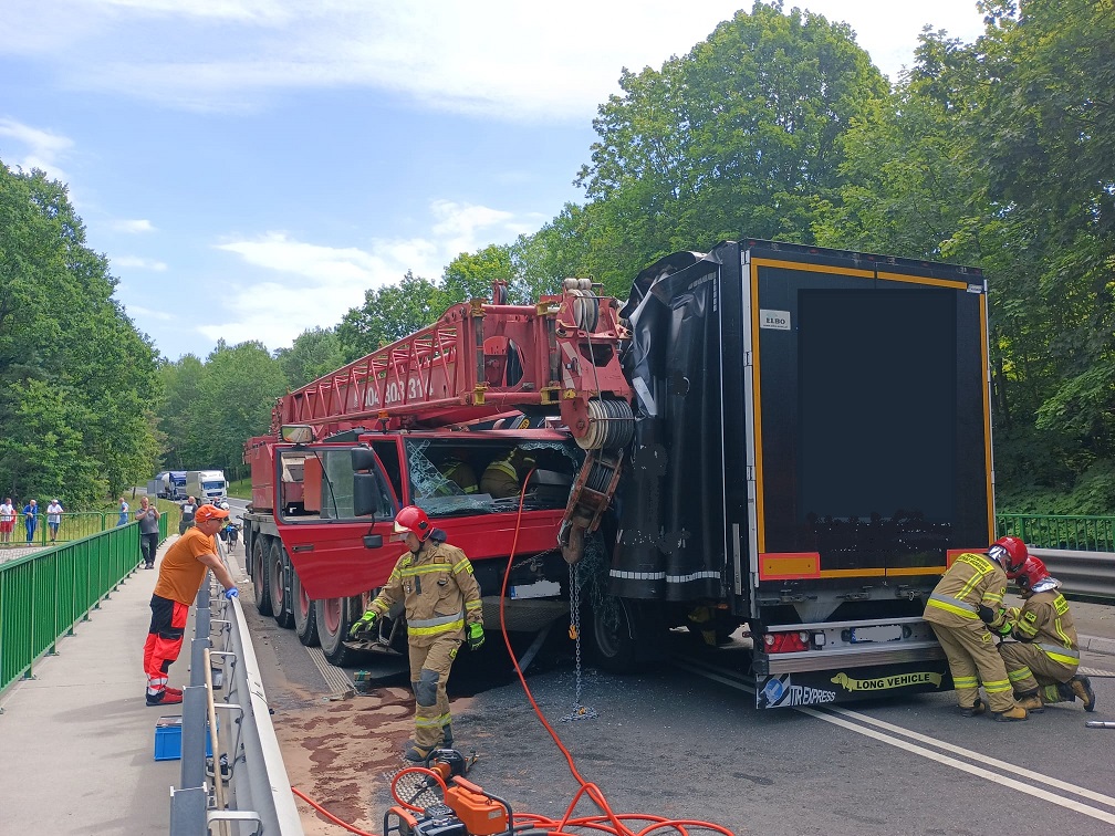Zderzenie ciężarówki z dźwigiem na DK-16