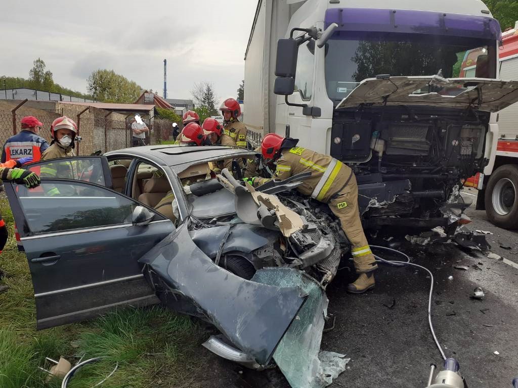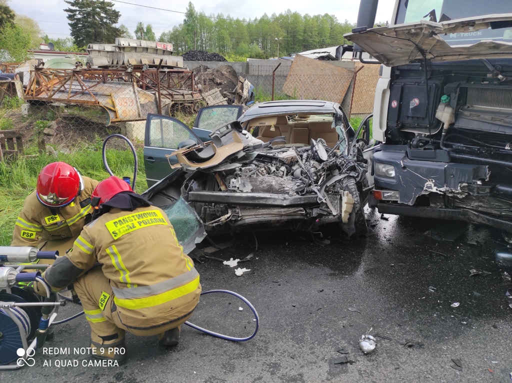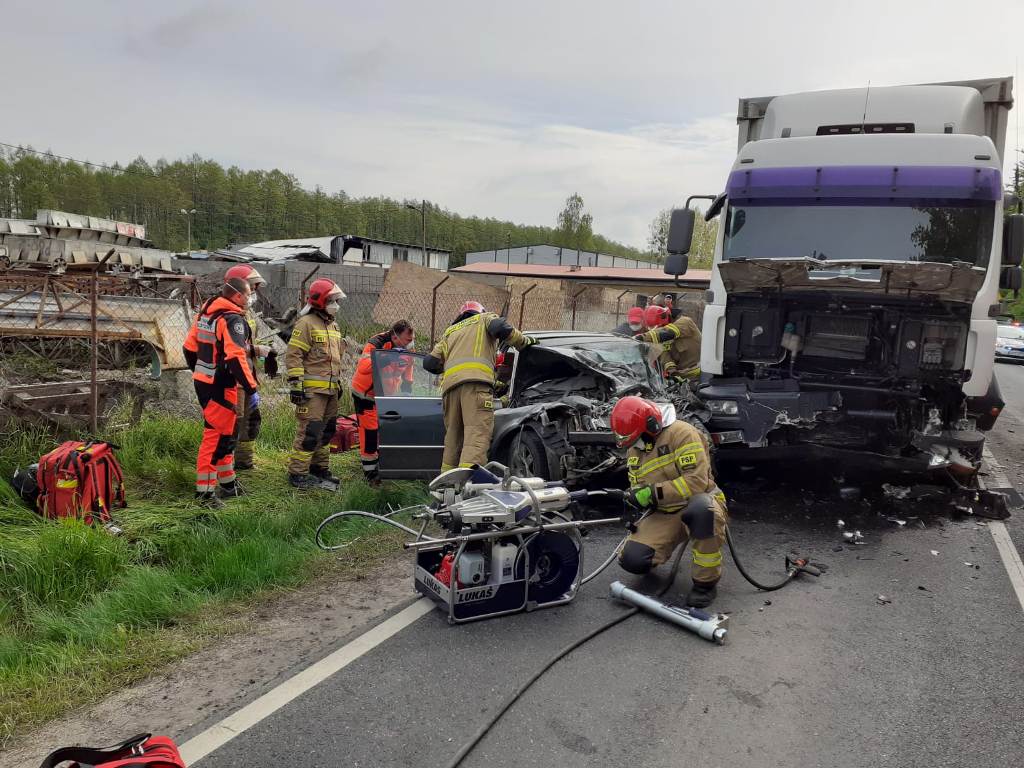 Kilkanaście minut po godzinie ósmej 19 maja doszło do wypadku drogowego w Ostródzie. Na drodze krajowej nr 16, w ciągu ulicy 11-go Listopada zderzyły się czołowo samochód osobowy z ciężarowym. Autem osobowym podróżowała kobieta, która została uwięziona w pojeździe. Ciężarówką kierował mężczyzna, który nie odniósł obrażeń. Do akcji ratowniczej z ostródzkiej JRG wyjechały dwa samochody ratowniczo-gaśnicze i rozpoznawczo ratowniczy. Strażacy na miejscu wypadku zastali poważnie rozbite pojazdy. Przystąpili do udzielania kwalifikowanej pierwszej pomocy medycznej rannej kobiecie. Równolegle przy pomocy ratowniczych narzędzi hydraulicznych wykonali dostęp do poszkodowanej. Strażacy musieli, niektóre elementy karoserii wyciąć, a inne rozeprzeć, aby można było ewakuować ranną z rozbitego auta. Ponadto strażacy zabezpieczyli pojazdy pod względem pożarowym oraz operację lądowania i startu śmigłowca HEMS, który przyleciał po poszkodowaną. Droga krajowa nr 16 na tym odcinku była zablokowana około dwóch godzin.