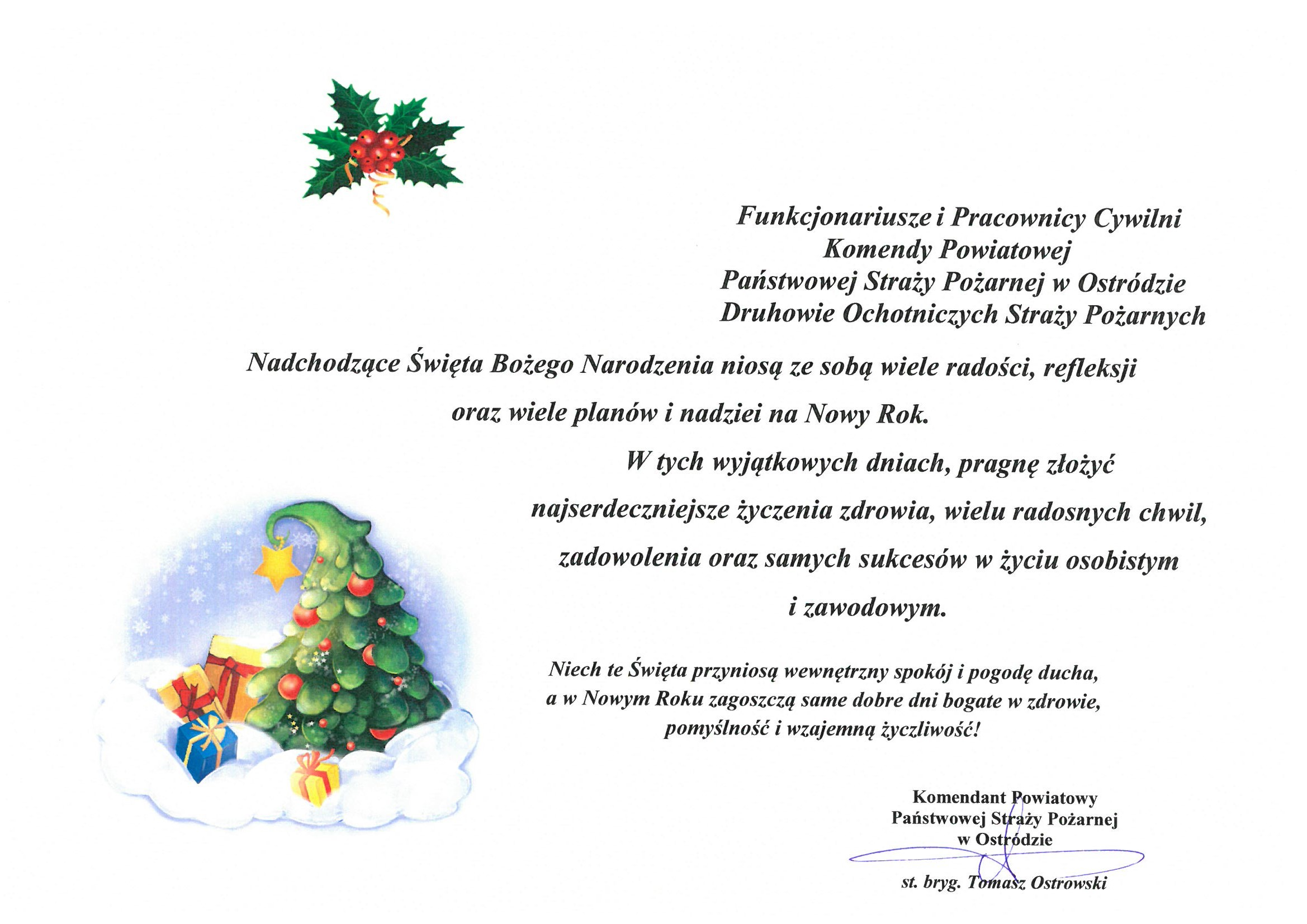 Życzenia Świąteczno-Noworoczne Komendanta Powiatowego PSP w Ostódzie 23.12.2020 Zdjęcia (1) Pokaż zdjęcie 1 z galerii.