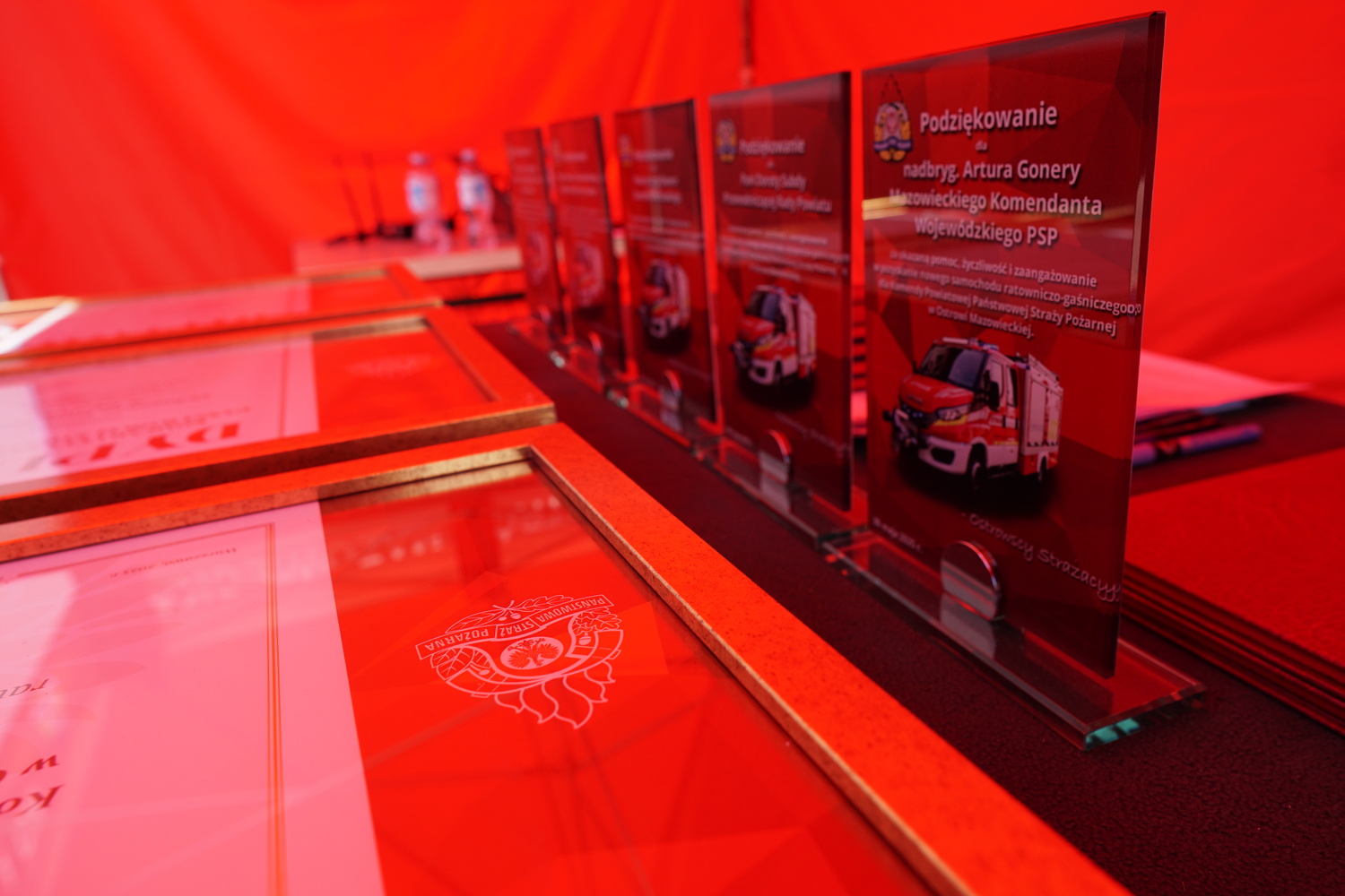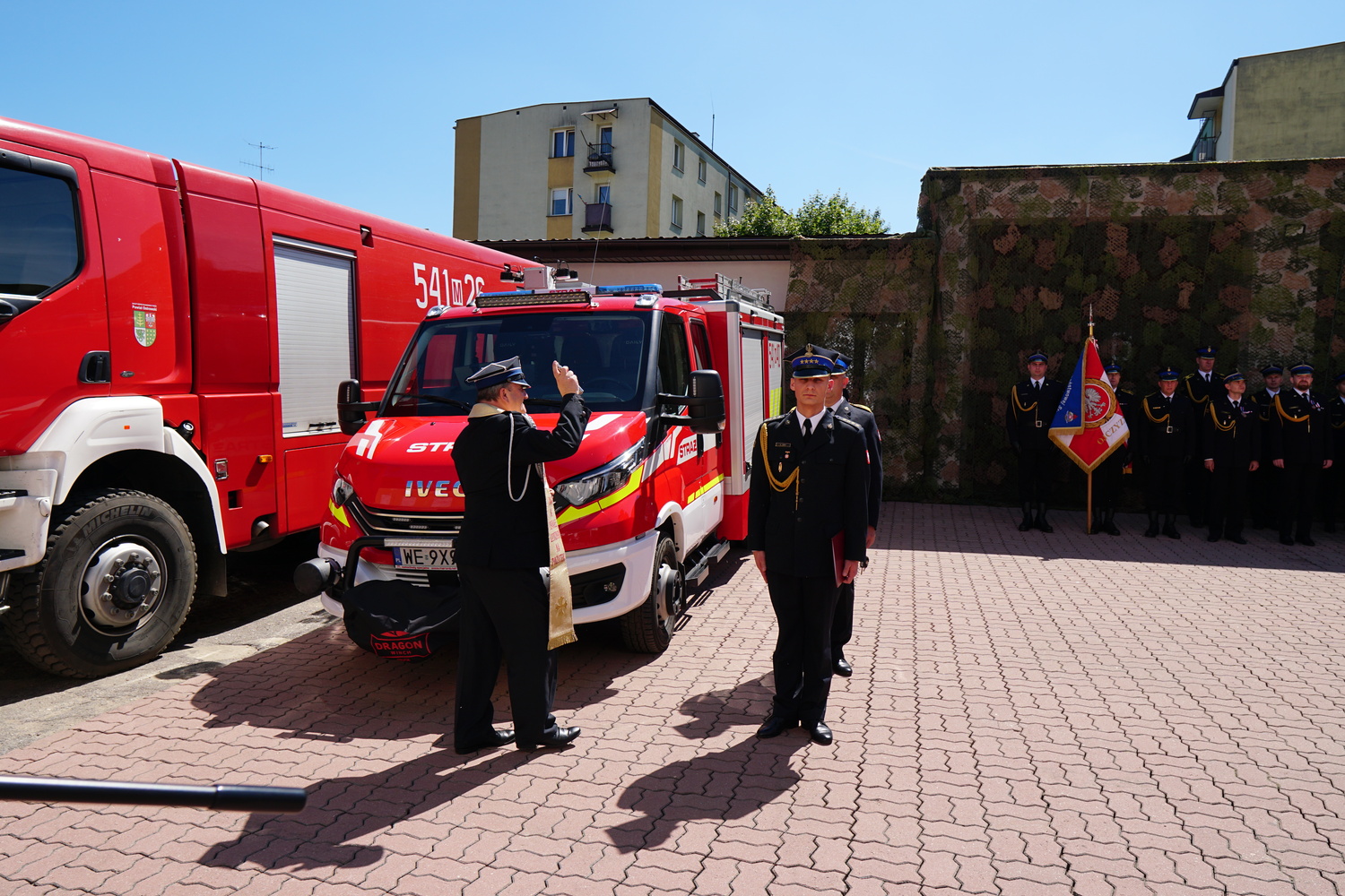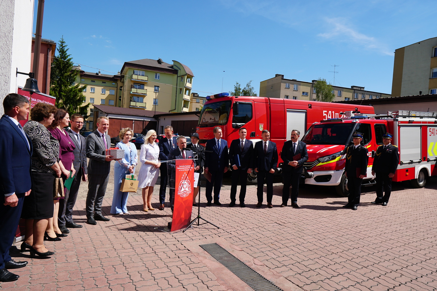 W trakcie uroczystości doszło do przekazania nowego pojazdu pożarniczego dla Komendy Powiatowej Państwowej Straży Pożarnej w Ostrowi Mazowieckiej. Lekki samochód ratowniczo – gaśniczy z funkcją ratownictwa technicznego GLBM–Rt 1,3/3,9/130 IVECO sfinansowany został ze środków: