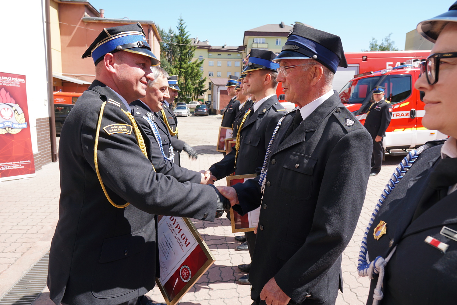 Podczas apelu wyróżniającym się strażakom wręczono odznaczenia i awanse na wyższe stopnie służbowe.
