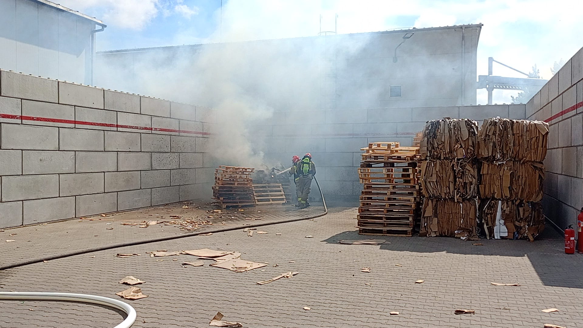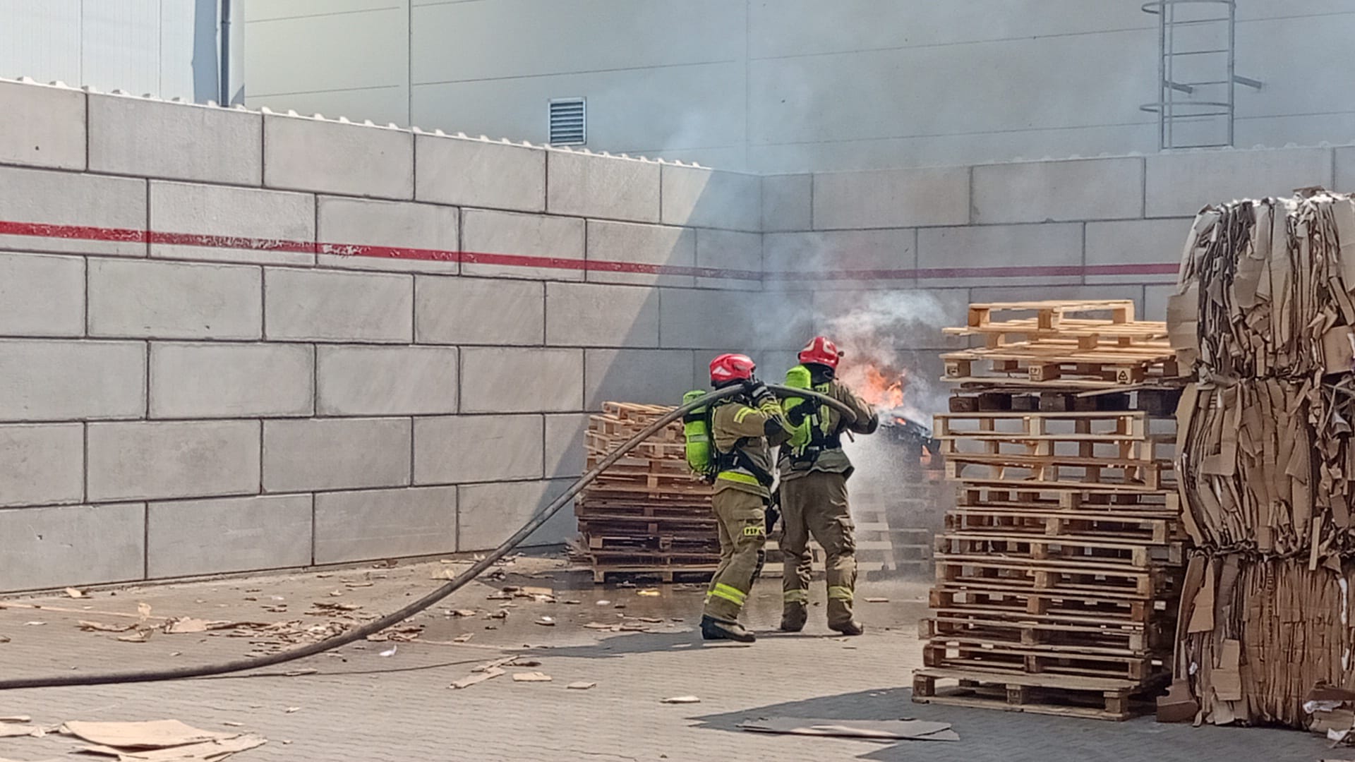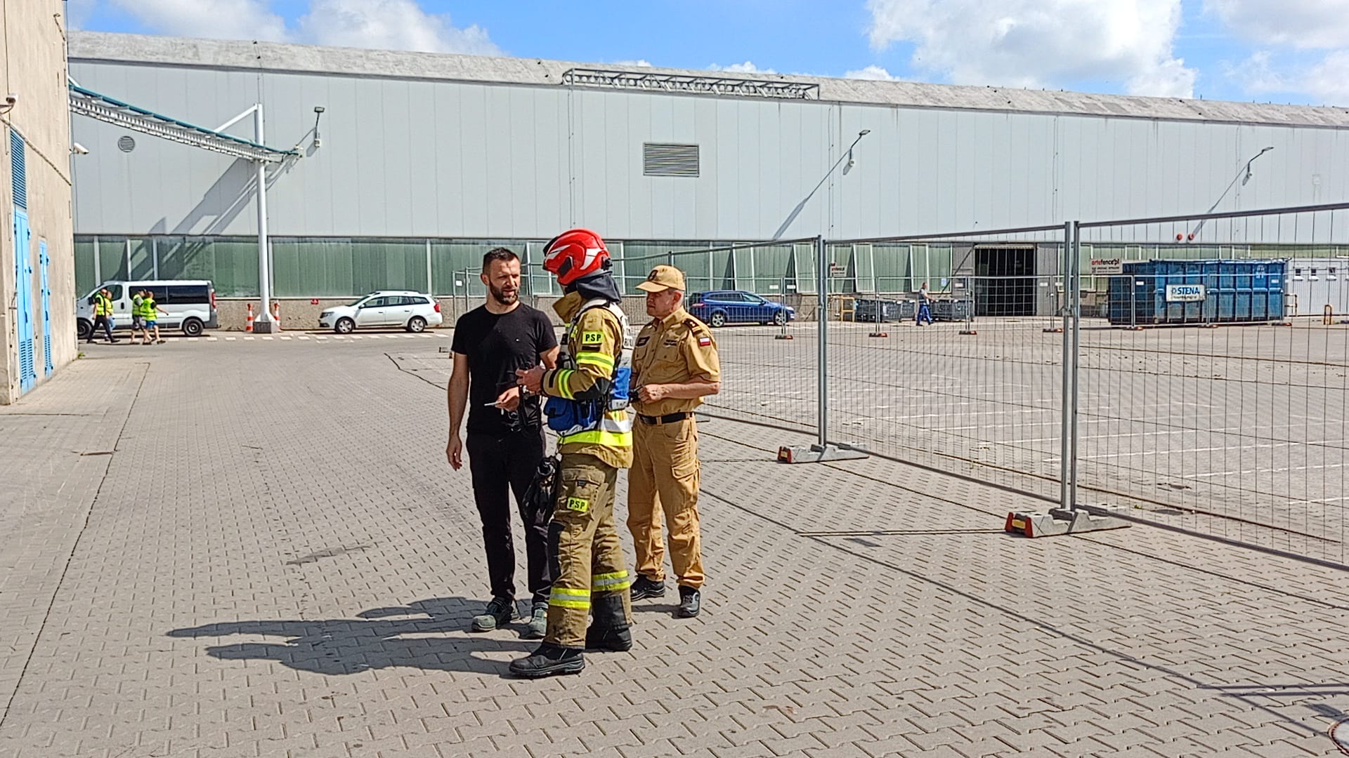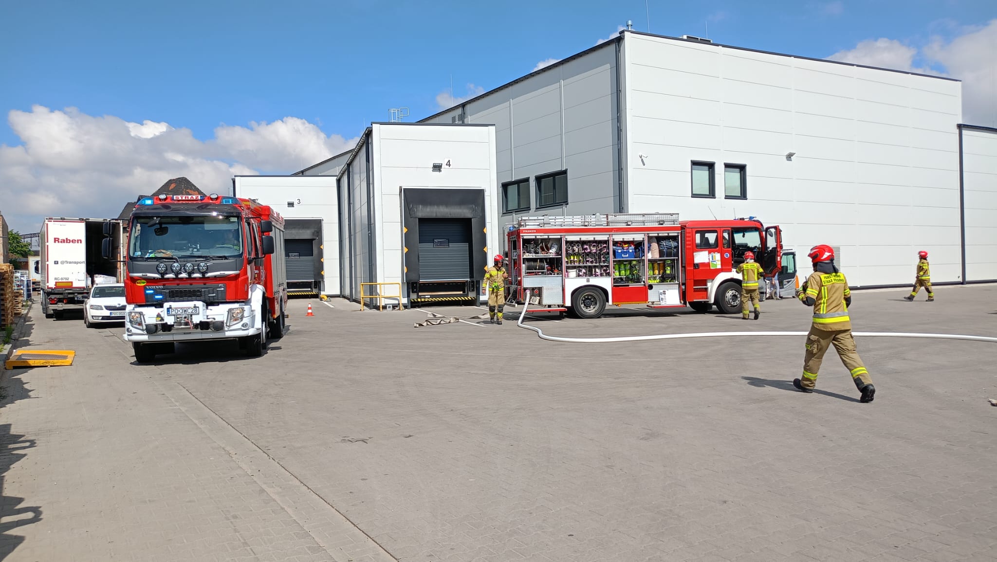 Scenariusz ćwiczeń obejmował pożar składowiska palet. W związku z wystąpieniem zagrożenia na terenie zakładu zdecydowano się na przeprowadzenie ewakuacji pracowników. Podczas ogłoszenia alarmu jeden z pracowników przypadkowo rozlał substancję chemiczną, w wyniku czego doznał poparzenia czynnikiem i stracił przytomność.