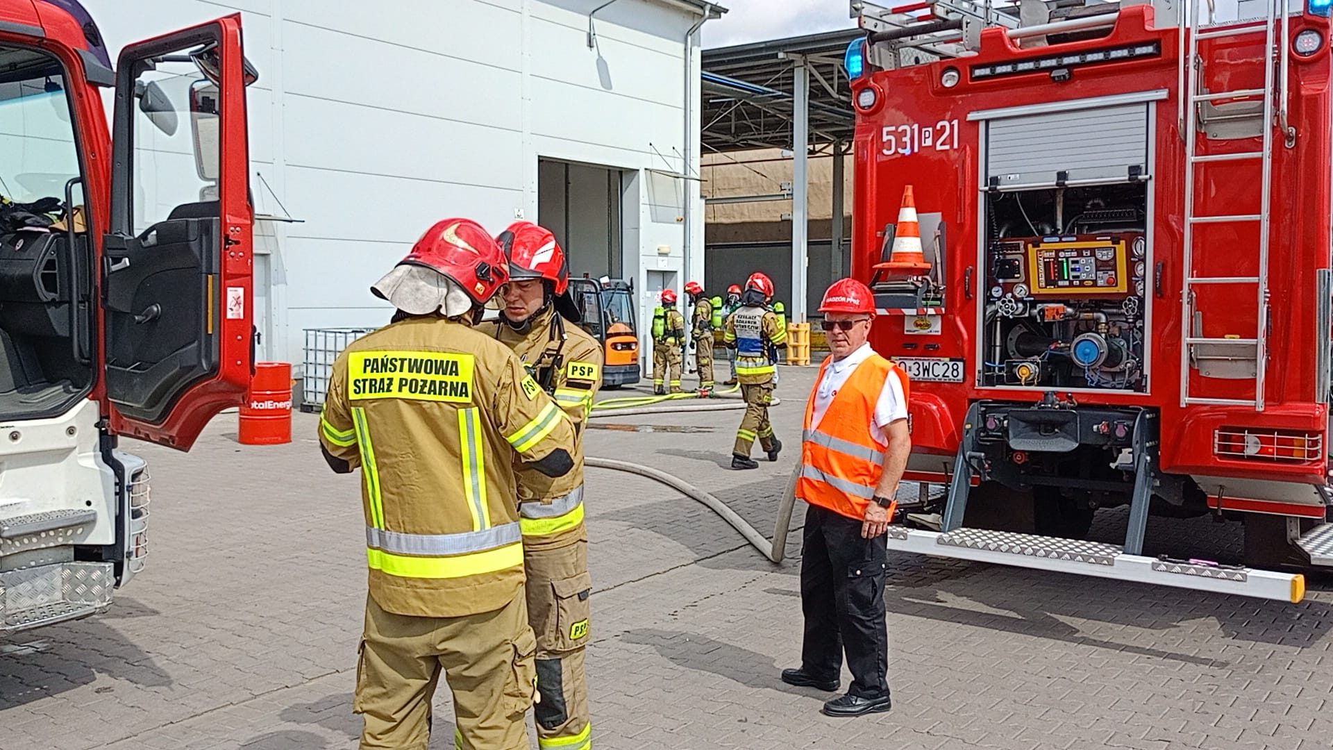 Działania straży pożarnej obejmowały zabezpieczenie miejsca zdarzenia, weryfikację ewakuacji zakładu oraz działania ratowniczo-gaśnicze, w tym z udziałem Specjalistycznej Grupy Ratownictwa Chemiczno-Ekologicznego „OSTRÓW”.