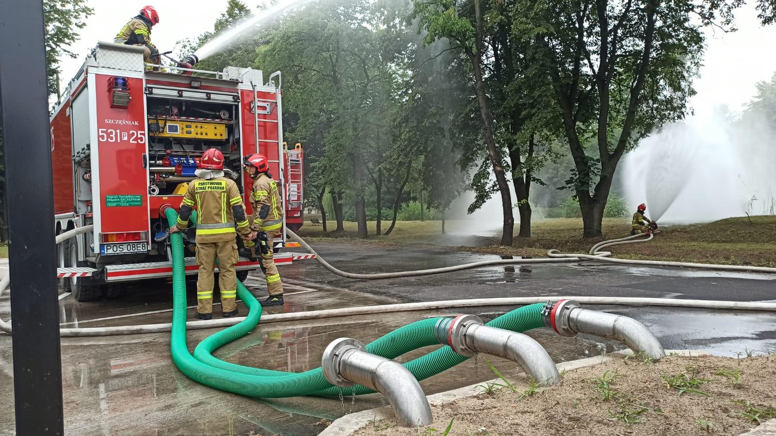 Strażacy sprawdzili również zaopatrzenie wodne do zewnętrznego gaszenia pożaru, a także możliwości rozstawienia i użycia sprzętu będącego na wyposażeniu jednostki.