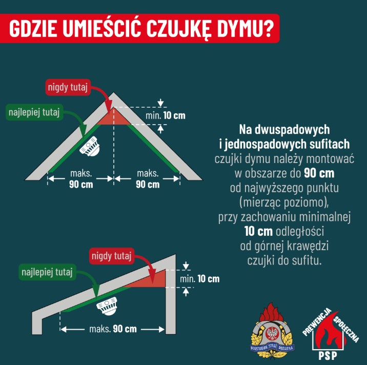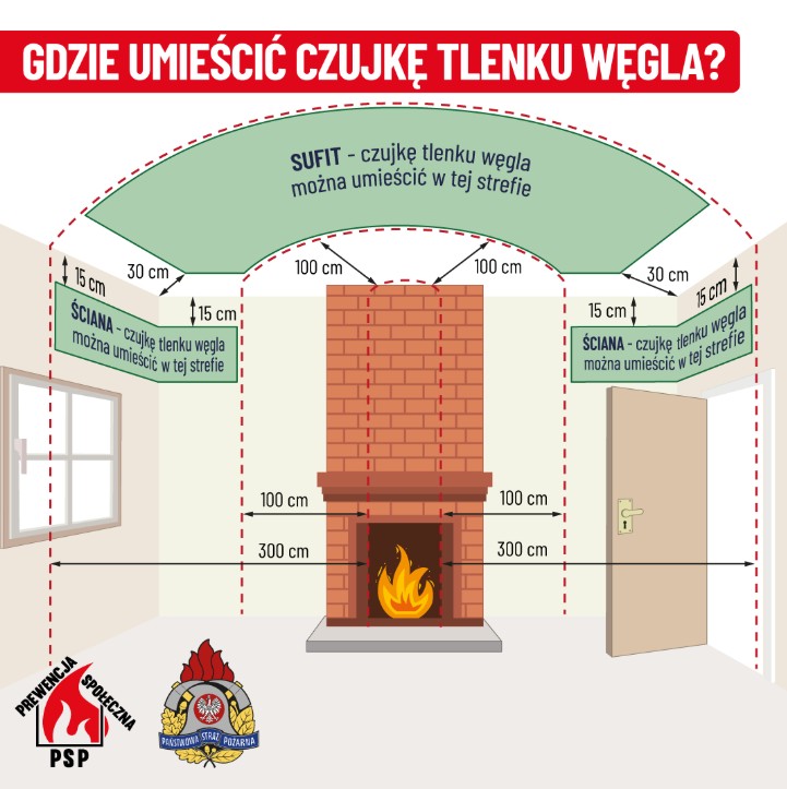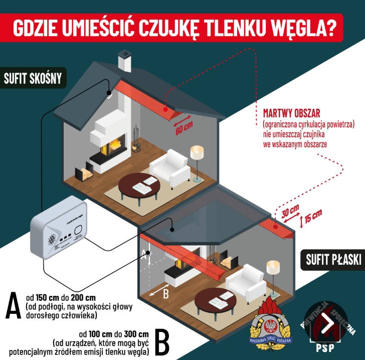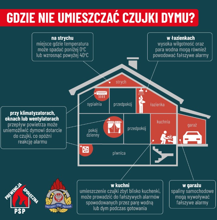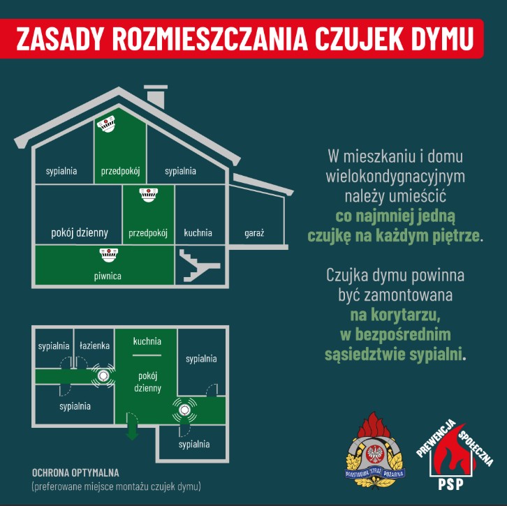- Państwowa Straż Pożarna rekomenduje instalowanie czujek dymu i tlenku węgla.