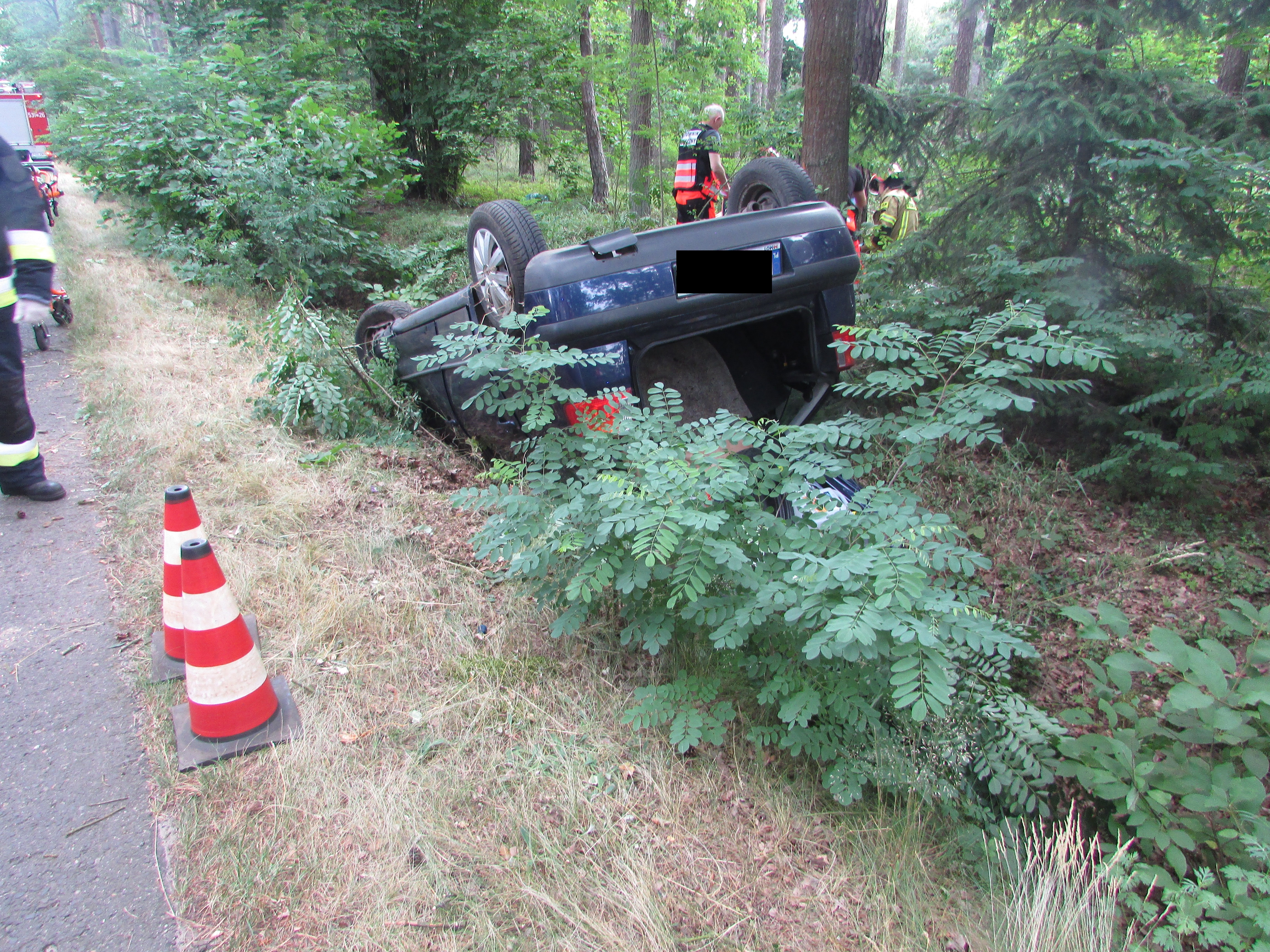 Po przybyciu pierwszych jednostek straży zastano pojazd osobowy znajdujący się w rowie na dachu. W wyniku tego zdarzenia poszkodowana została jedna osoba, której udzielono kwalifikowanej pierwszej pomocy. Następnie osoba została przekazana przybyłemu na miejsce Zespołowi Ratownictwa Medycznego.