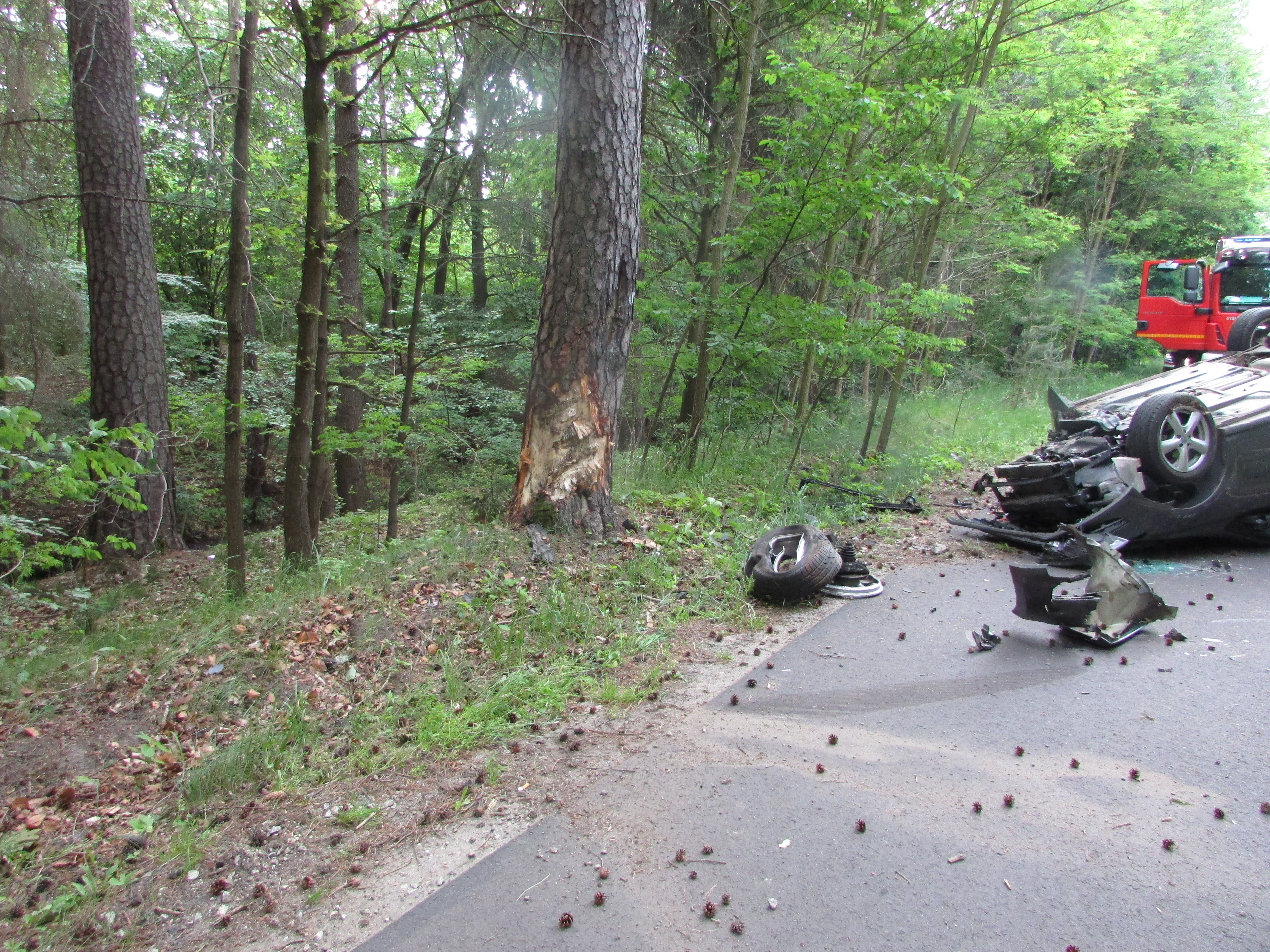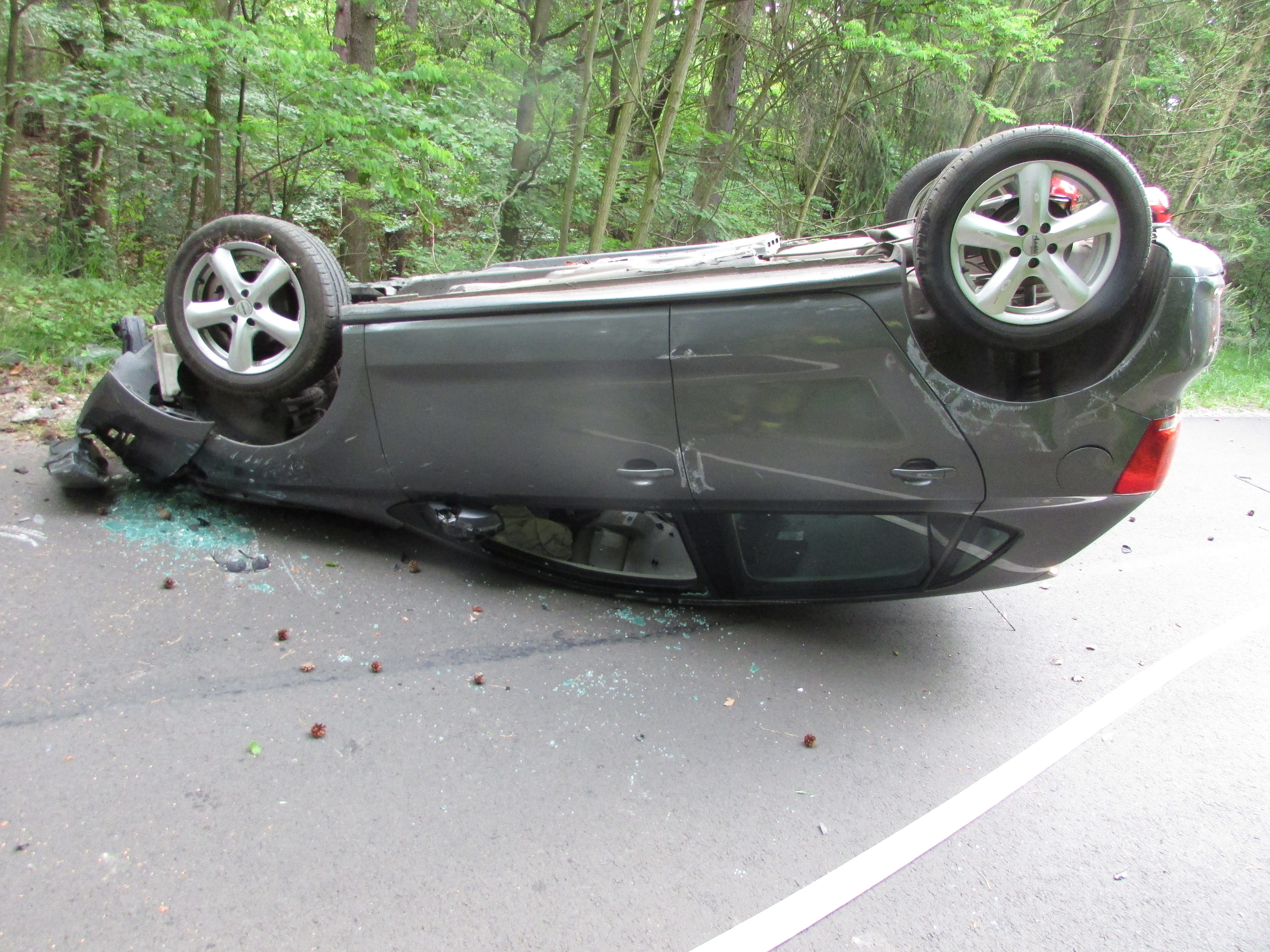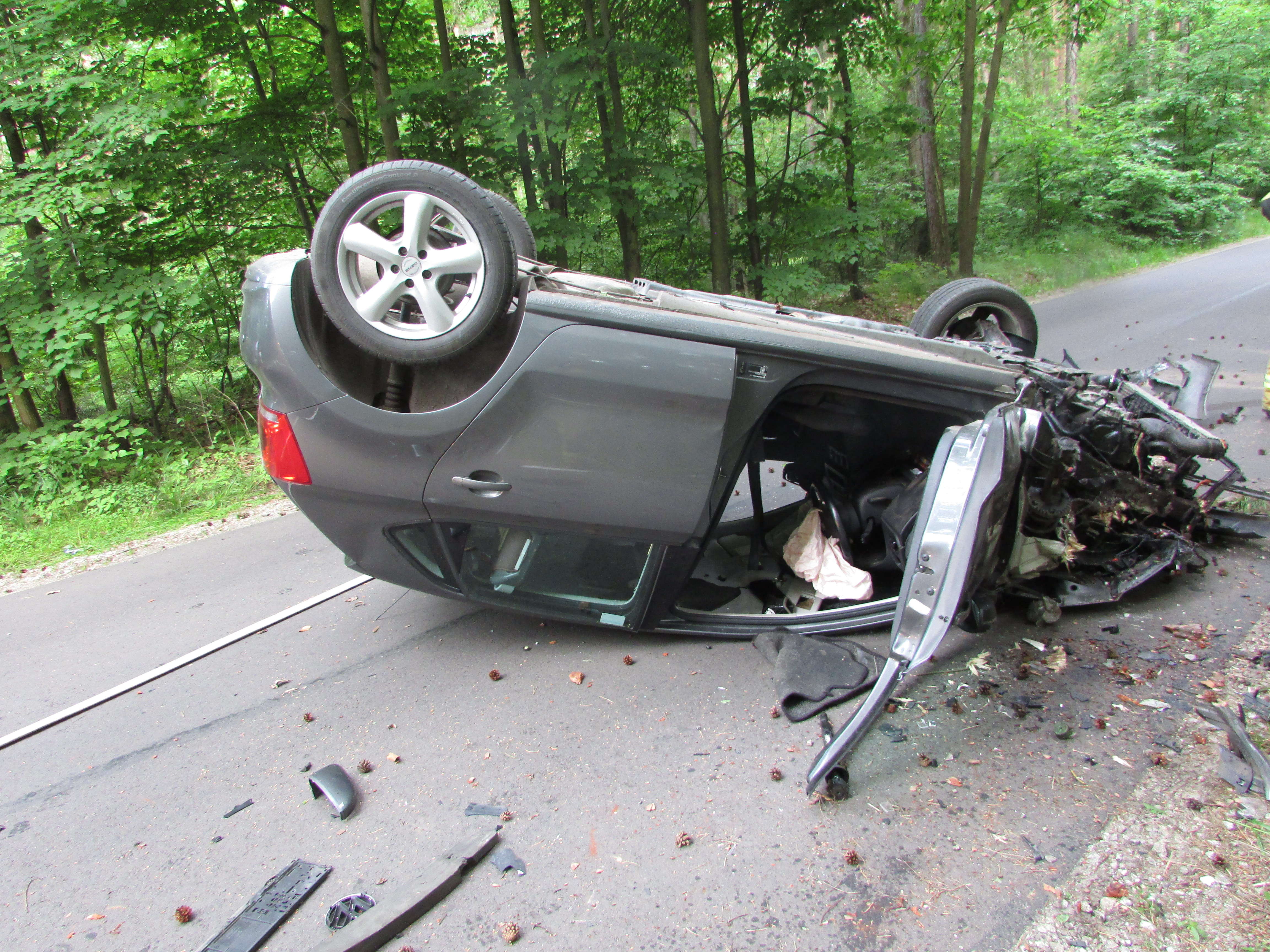 Po przybyciu na miejsce zdarzenia straży pożarnej zastano samochód ustawiony na dachu. Nasze działania polegały na zabezpieczeniu miejsca zdarzenia, wydobyciu osoby poszkodowanej z pojazdu i udzieleniu jej kwalifikowanej pierwszej pomocy. Następnie osoba poszkodowana została przekazana przybyłemu na miejsce Zespołowi Ratownictwa Medycznego.