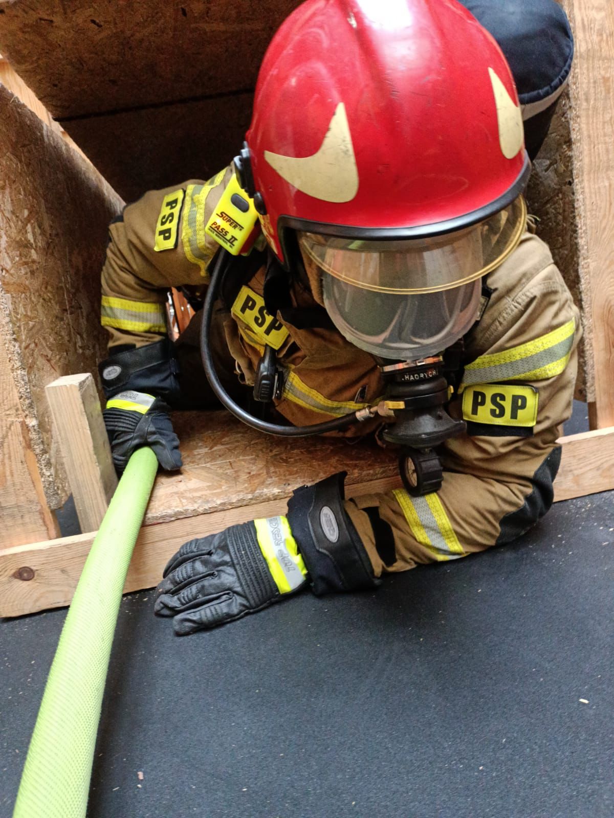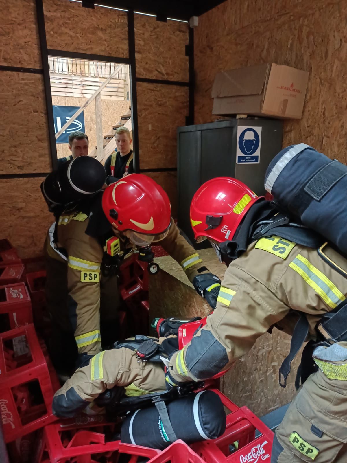 - Ewakuacja nieprzytomnego strażaka z miejsc trudno dostępnych: z okna, z dachu, z piwnicy, z ciasnych przestrzeni.