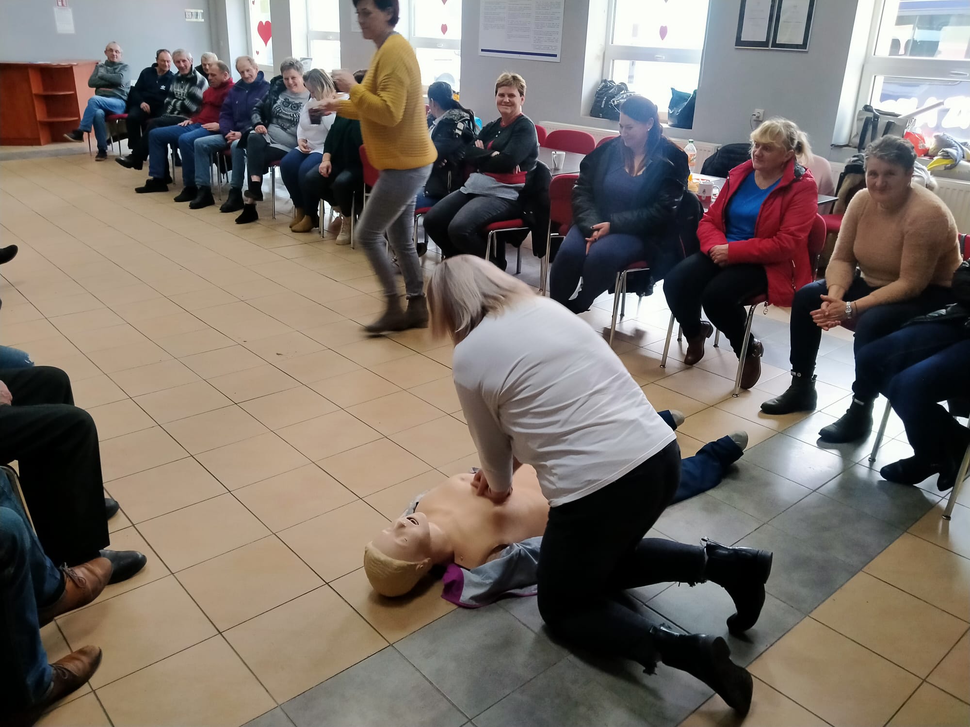 Tym razem spotkanie było okazją do przybliżenia wiedzy z zakresu udzielania pierwszej pomocy. Uczestnicy szkolenia zapoznali się z ogólnymi zasadami udzielania pierwszej pomocy w nagłych przypadkach, specyfiką działania i wykorzystywania zautomatyzowanego defibrylatora zewnętrznego AED oraz przećwiczyli m.in. czynności resuscytacyjne na fantomach.