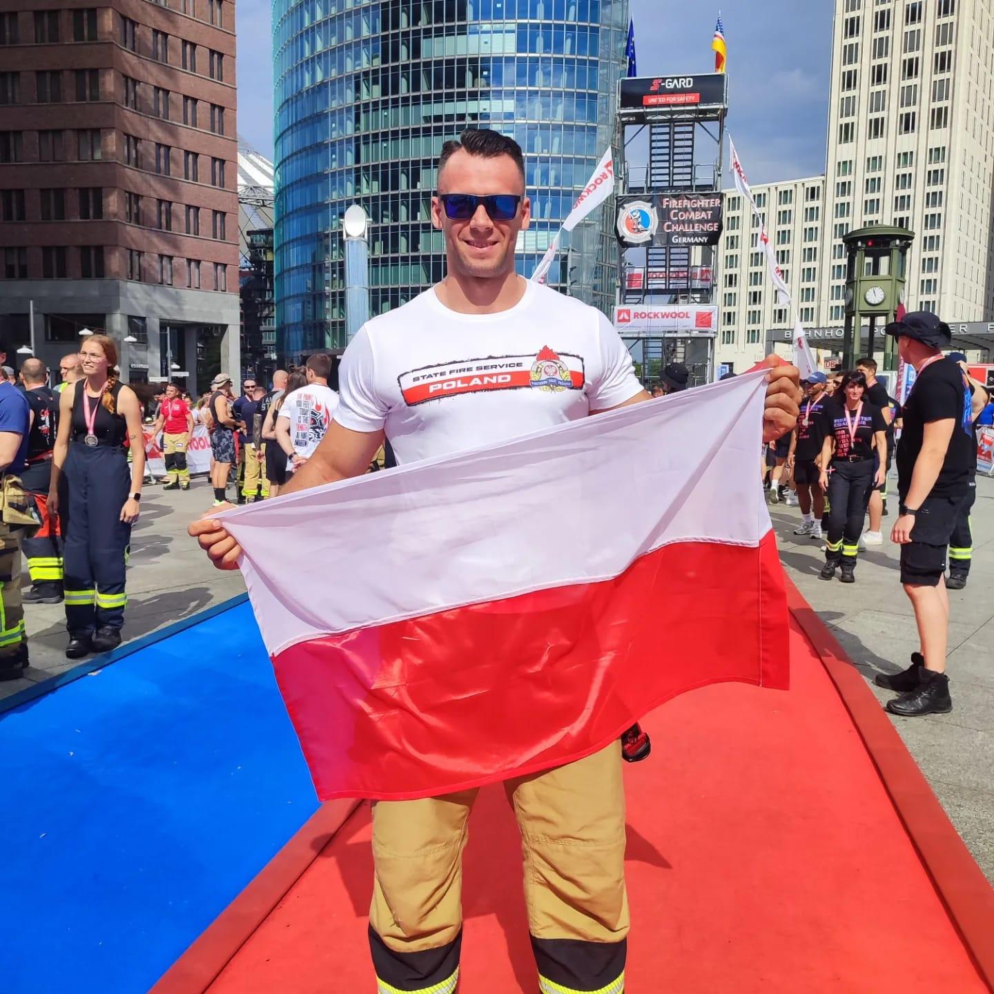 W pierwszym dniu zmagań startował w biegu indywidualnym i zajął 3 miejsce w kategorii open oraz 2 miejsce w kategorii M30. Wyniki w tych konkurencjach pozwoliły mu na dołączenie do elitarnego grona “Fire&Fight Club”, czyli do osób, którzy złamali czas 1 minuta 30 sekund.