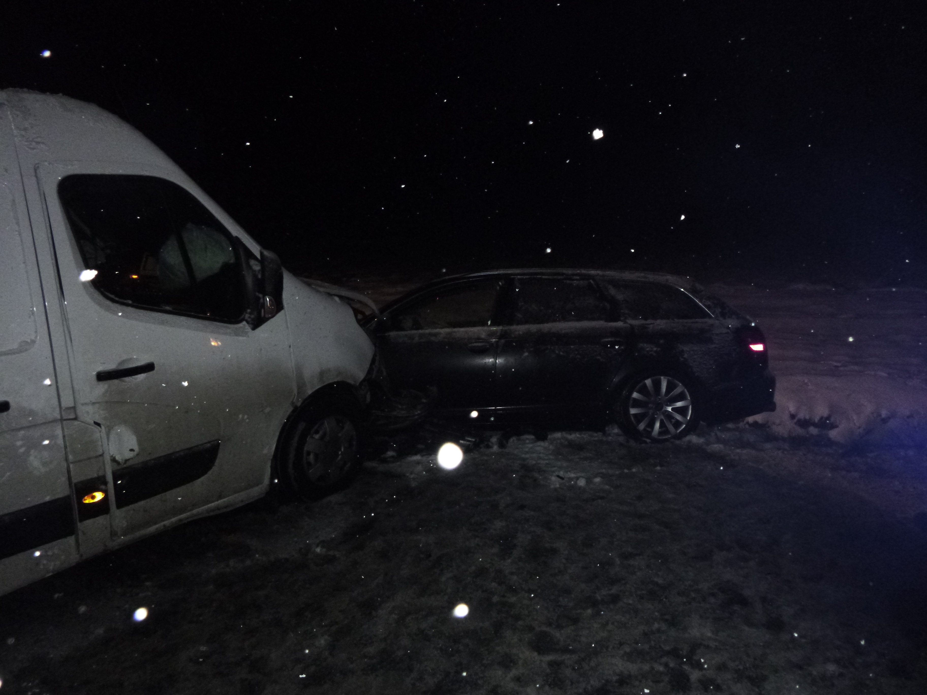 W dniu dzisiejszym około godziny 5:30 SK KP PSP w Ostrowie Wielkopolskim otrzymało zgłoszenie o kolizji dwóch samochodów na prostym odcinku drogi w okolicach miejscowości Ołobok.