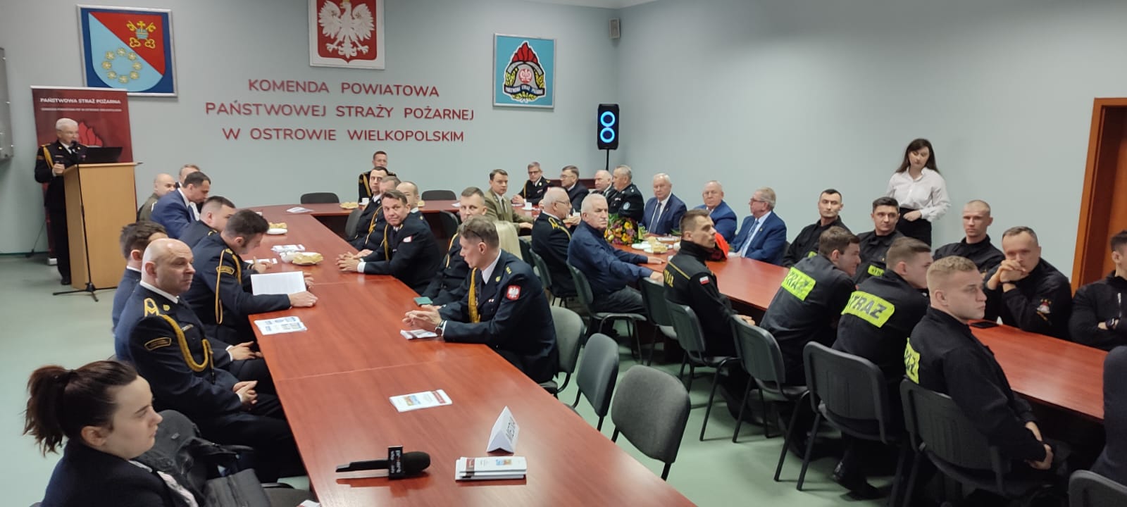 Po przywitaniu wszystkich przybyłych na spotkanie, Komendant Powiatowy PSP w Ostrowie Wielkopolskim przedstawił zrealizowane w ubiegłym roku zadania i przedsięwzięcia, ze szczególnym uwzględnieniem działalności operacyjnej, prewencyjnej oraz logistycznej w zakresie funkcjonowania tutejszej komendy oraz organizacji Krajowego Systemu Ratowniczo-Gaśniczego. Podczas wystąpienia Komendant wspomniał, że w 2023 roku Stanowisko Kierowania Komendanta Powiatowego PSP w Ostrowie Wielkopolskim dysponowało jednostki ratownicze PSP i OSP do 1955 zdarzeń. Podsumowując wystąpienie Komendant wskazał główne kierunki działań i zamierzeń wyznaczonych dla ostrowskiej komendy na 2024 rok. Podziękował także wszystkim obecnym za wsparcie i pomoc przy dotychczasowej realizacji zadań.
